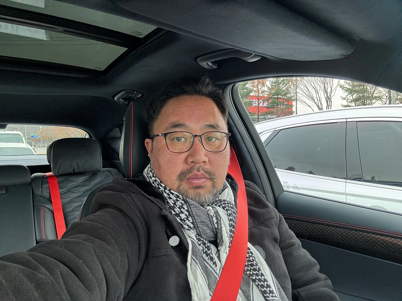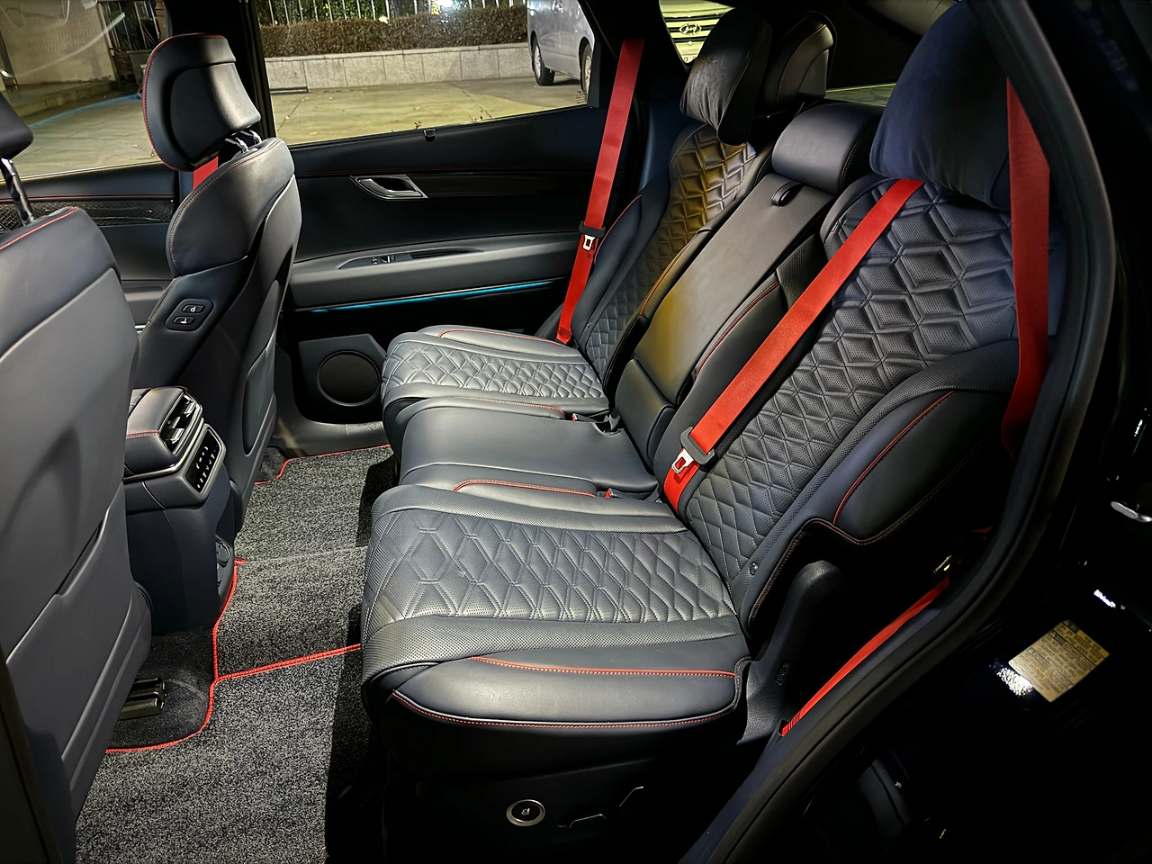 반면 2열은, SUV하고 비교해도 공간 차이가 크지 않습니다. 제 기억으로는 X6나 GLE 쿠페 중에 2열 시트 등받이가 리클라이닝 되는 차가 없었던 것 같은데… GV80 쿠페는 기본 차와 같은 수준으로 꽤 많이 뒤로 넘어갑니다. 덕분에 여유 있는 헤드룸을 더 넉넉하게 쓸 수 있더군요. 시승차의 네이비 컬러 가죽과 오렌지 스티치, 벨트 조합은 정말 끝내 줬습니다.