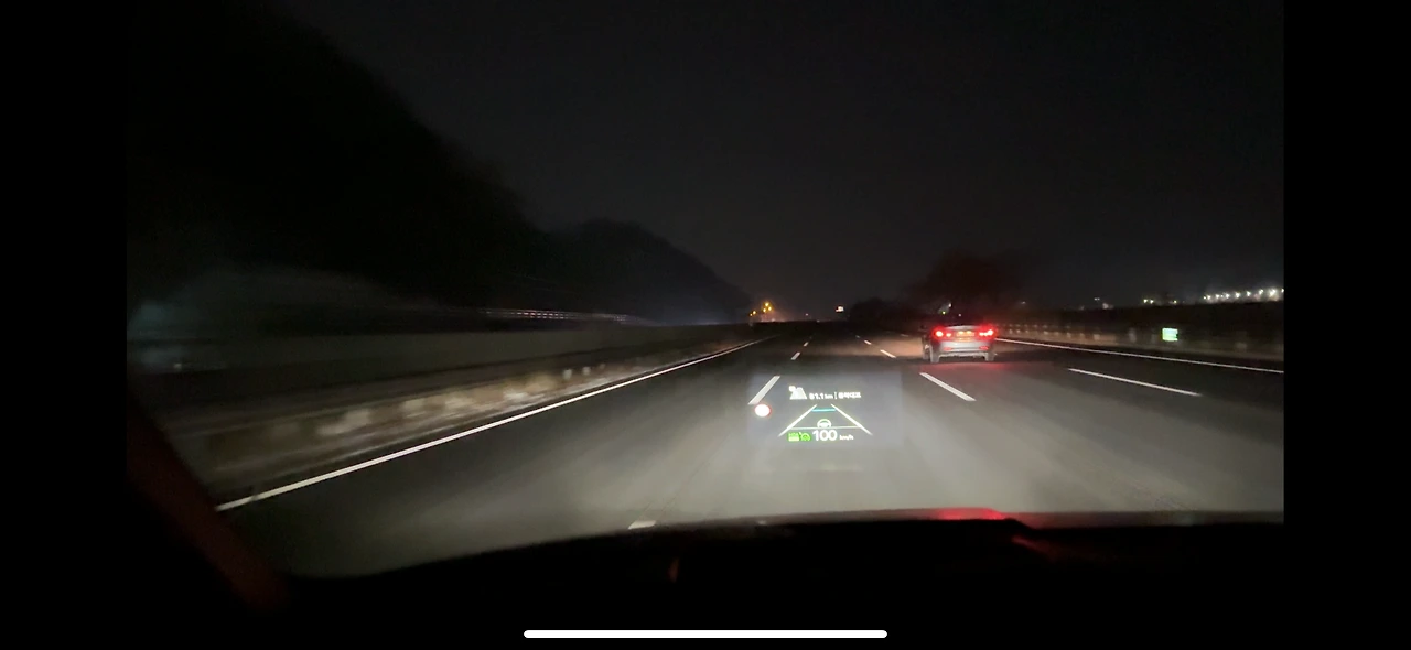 참, 이번에 시승하면서 재밌었던 건 풀 LED 헤드라이트의 지능형 하이빔 기능입니다. 중앙분리대 쪽이 맞은편에서 오는 차 불빛에 따라 영역을 나눠 커지고 꺼지는 것을 볼 수 있었습니다.