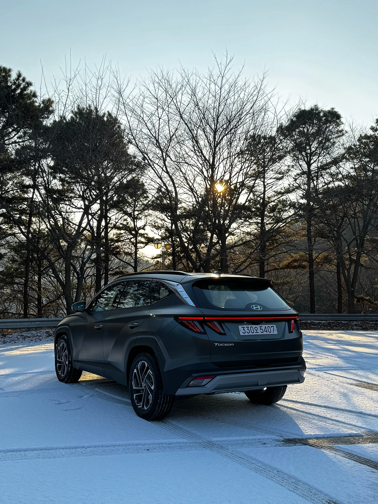 처음에 180마력은 좀 부족하지 않나 싶었습니다. 투싼(1575kg)은 같은 엔진의 코나(1420kg)보다 155kg이나 무겁고, 출력은 코나 198/투싼 180마력으로 더 낮거든요. 최대토크 숫자가 27.0kg.fm로 같은데 더 낮은 회전수에서 나올 뿐 아니라, 빠릿빠릿하게 그러면서도 충격이 거의 없는 7단 DCT가 열심히 일하는 덕에 꽤 시원스럽게 달립니다. 되려 ‘올시즌 타이어인데 왜 자꾸 미끄러지는데…’ 싶었습니다. 하긴 투싼은 원래 현대자동차 SUV라인업에서 가장 경쾌한, ‘Dynamic’을 내세우는 차였으니까요.