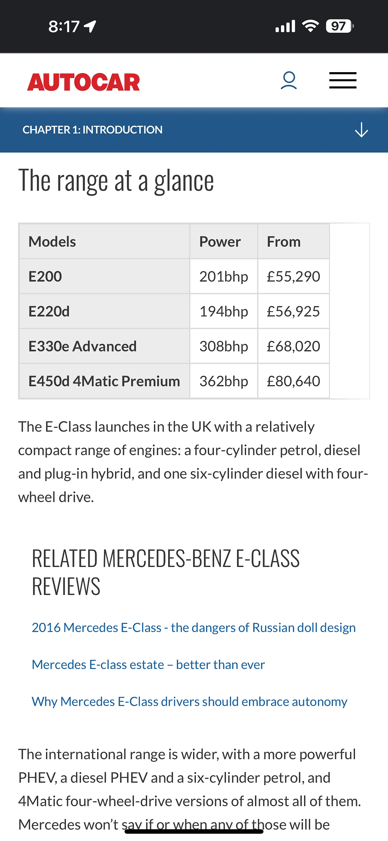 영국 <오토카>의 새 메르세데스 벤츠 E 클래스에서 대한 평가. 일단 완전 새 차인데, 종합 평가와 항목별 평가에서 만점이 아닌 별 4개를 받았다는 점부터 시작. ㅎㅎㅎㅎ