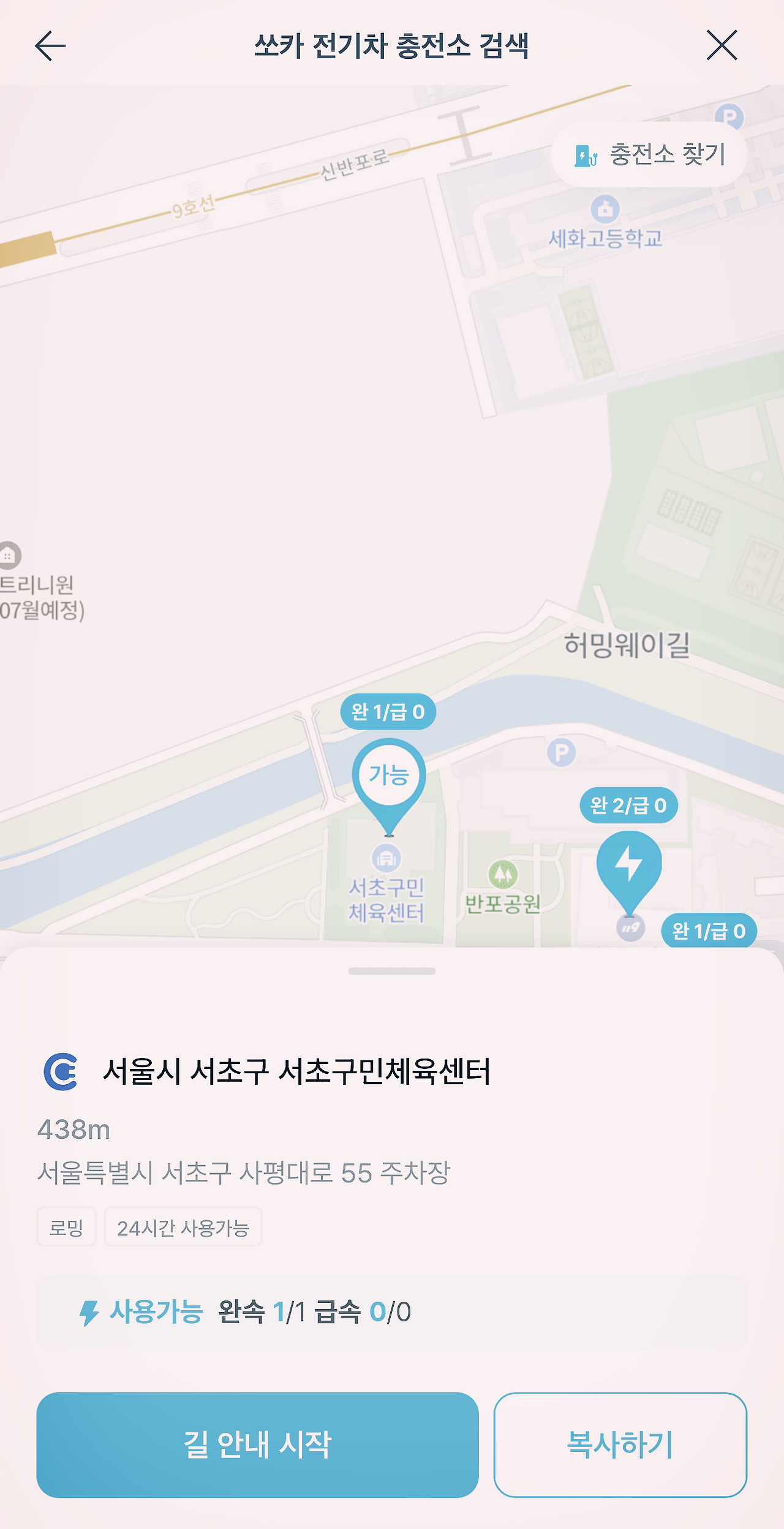 서울시나 환경부의 급속 충전기는 쏘카의 충전카드 인식이 되지 않고요. 어젯밤 9시에 반납해 아침에도 쓰는 상황이라, 반납까지 시간이 좀 있길래 제가 충전해 두려고 돌아다니다가 포기했다지요.