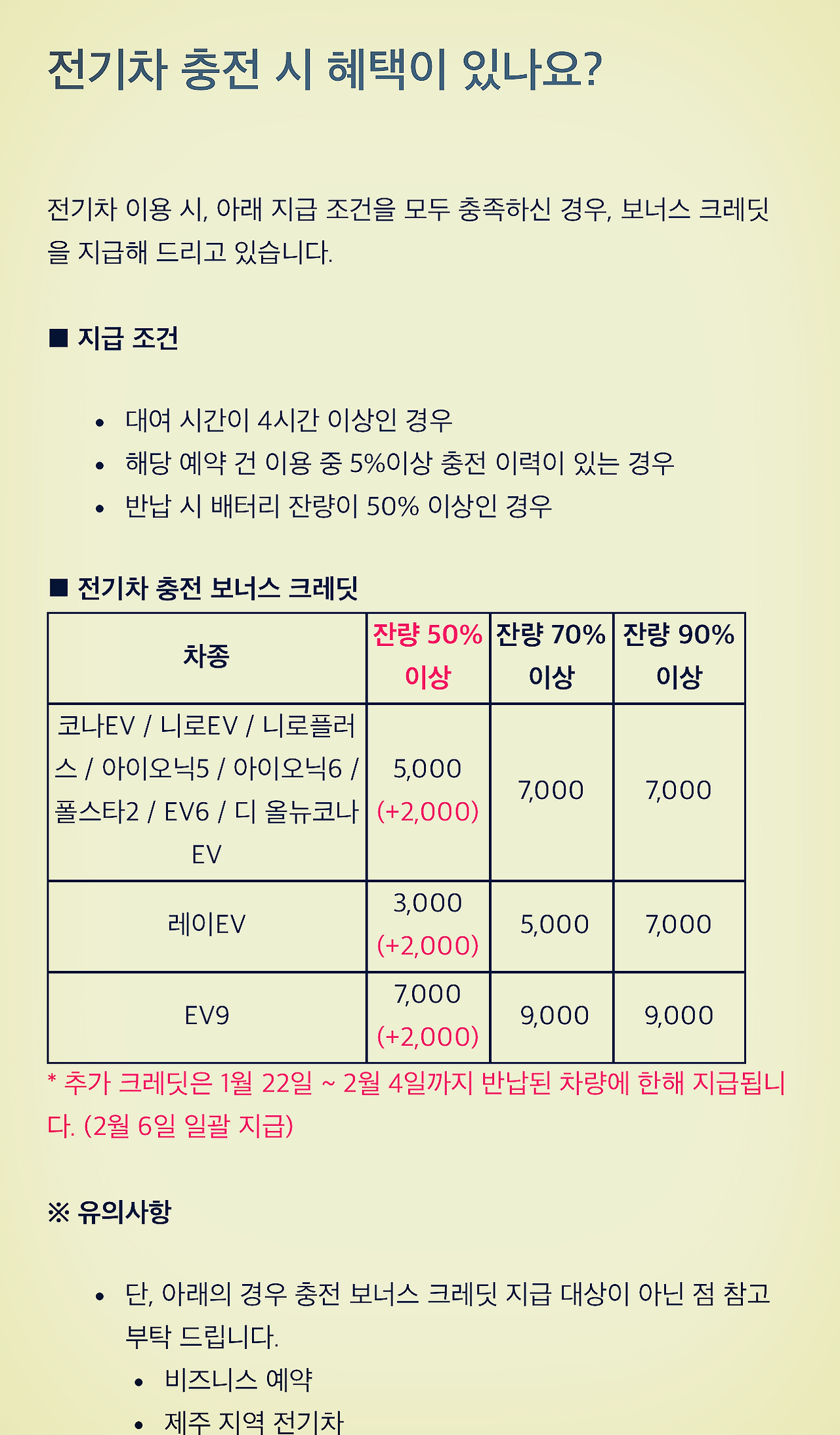 아쉬운 건 쏘카의 운영 방식입니다. 위 사진처럼 전기차 사용 후 충전해서 반납하면 크레딧을 제공한다는데… 맞는 충전소를 찾기가 너무 어렵습니다. 대부분 완속만 알려주는 데다 분명 쏘카 앱에서 확인한 24시간 운영한다던 급속 충전기는 쓸 수가 없더군요.
