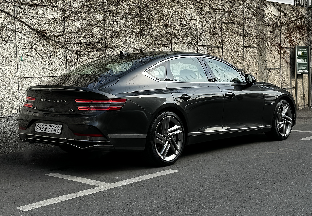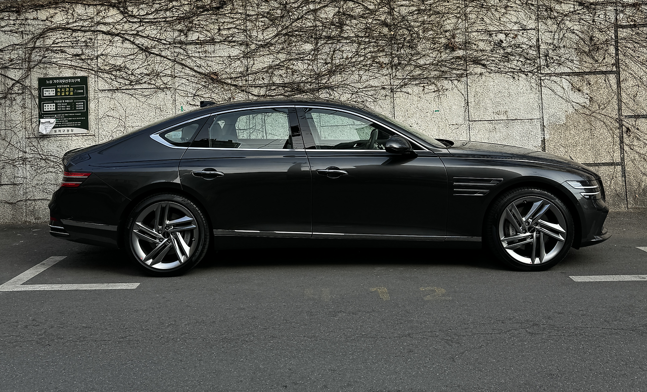 G80과 GV80은 제네시스의 3세대 모듈러 플랫폼을 쓴 첫차들이지요. 1세대 BH, 2세대 DH를 거쳐 3세대가 론칭했을 때 ’무거운 차로 스포티한 달리기‘와 디자인을 위해 편평비가 낮은 ’20인치 휠‘의 조합은 어쩔 수 없이 단단했습니다. 새 차는 이런 걸림돌을 그간 쌓인 경험과 실력으로 극복했습니다. 그래서 꽤나 나긋하고 유연합니다. 올시즌 타이어의 고속주행도 부담 없이 매끈합니다. 레벨 업이 확실히 되었더군요.