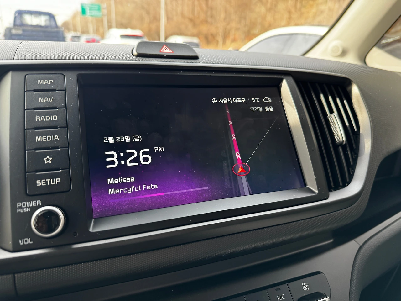 되려 아쉬운 부분은 여러 조작부입니다. 현대/기아차들이 다 그런 것 같은데 왜 현재 재생 중인 오디오 제목을 보여주는 데 이리 인색한 지 모르겠습니다. 순정 내비 화면에서는 확인이 안 되고 위 사진처럼 홈 화면에 한 줄 보이거나 아예 오디오로 화면을 바꿔야 합니다. 그렇다고 계기판에 띄울 수도 없고요. 이거야 말로 소프트웨어 적으로 할 수 있는 일 아니던가요. 일부러 불편하게 만들려는 건 아니잖아요.