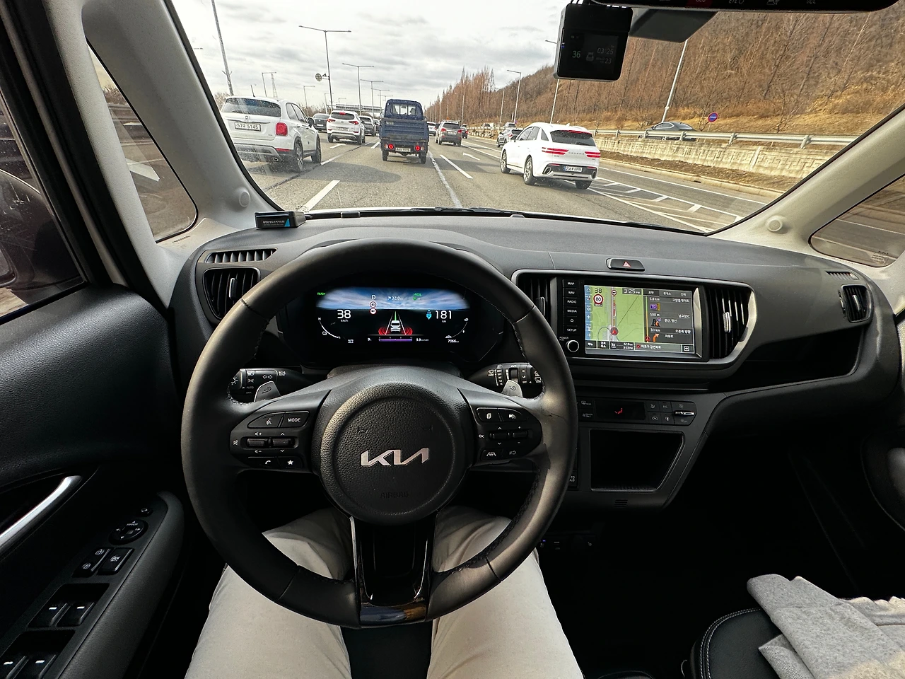 앞뒤 휠베이스가 차 길이에 비해 긴 편이지만 그래도 짧은 경차인 데다 높게 앉는 시트 포지션, 얼굴 앞 머리 공간이 커 흔들림이 더 크게 느껴지는 것 같더군요. 익숙해지면 좀 낫지 않을까 싶은 생각이 들긴 했습니다.