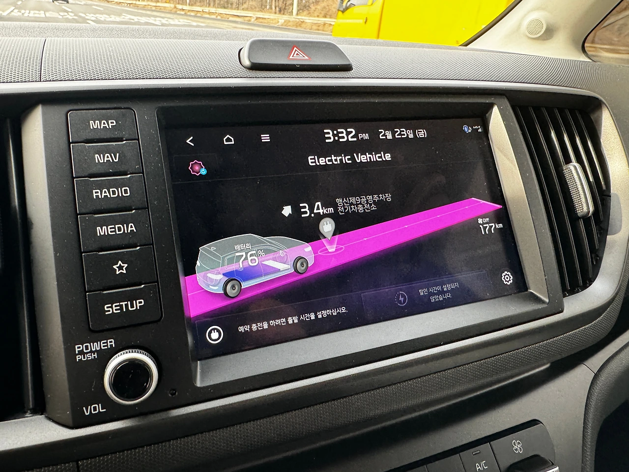 배터리 잔량 77% 정도에서 185km 주행가능거리가 나오더군요. 원래 이런 차니 나쁘지 않습니다. 배터리 용량이 적으면 주행가능거리도 짧지만, 충전을 짧게 해도 된다는 건 장점이 됩니다. 최근처럼 급속 충전 네트워크가 늘어난 상황에서는 고속도로 150km 정도 달려 20% 잔량 상태에서 급속 충전에 물리면 80%까지 21.1kWh 정도는 요즘 일반 급속으로도 30분이면 들어갑니다. 늘 드리던 말씀대로 충전기 물리고 화장실 갔다가 핫바(아이스크림) 하나 먹으면 됩니다.