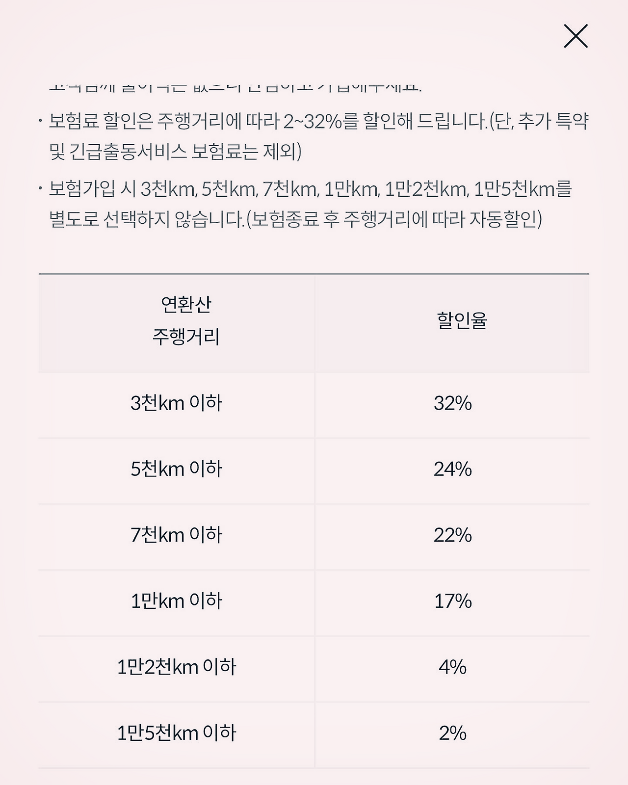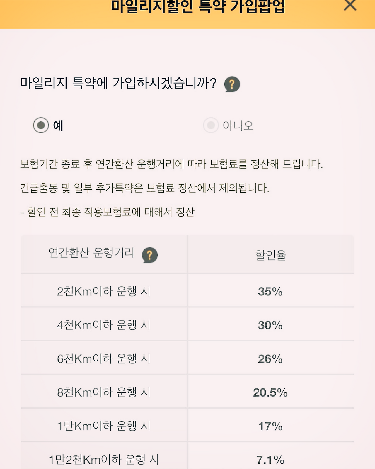 결국 KB와 DB 둘 중의 하나였는데… 여기서 따진 것은 주행거리에 따라 추가 할인을 해주는 마일리지 특약입니다.