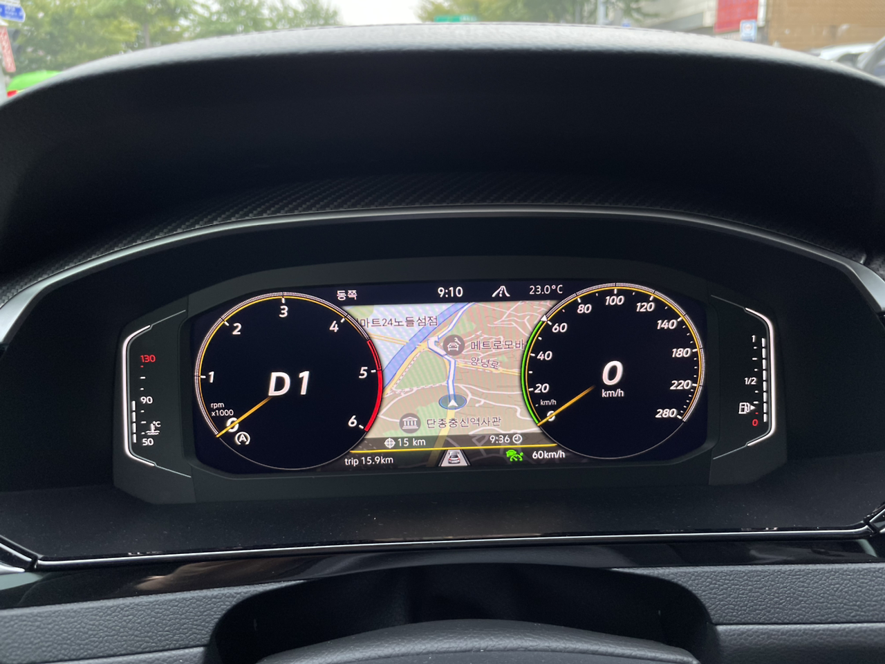 실내는 폭스바겐이 그렇듯 단정합니다. 물론 헤드레스트 일체형 앞 버켓시트라던가, 카본 패턴을 쓴 나파가죽, 은은하게 빛을 내는 무드라이트 등 적당한 화려함도 있습니다. 인테리어가 너무 요란하면 사실 내 차로 오래 타기에는 좀 질리는 경향도 있습니다. 개인적으로는 요 정도가 딱 좋네요.