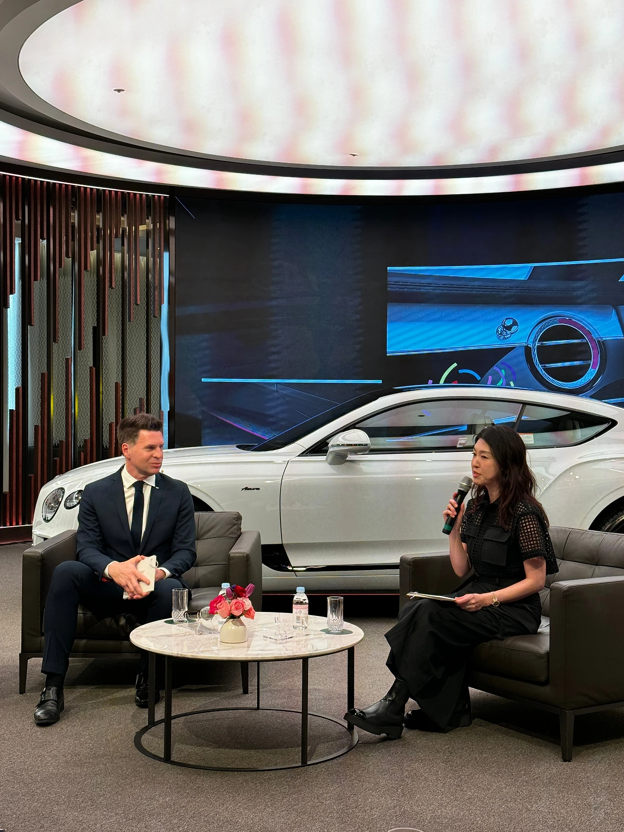 전 좀 특별하게 궁금했던 것이 있었습니다. 그래서 크리스티안 슐릭 벤틀리 코리아 담당 상무와 하태임 작가님에게 질문을 드렸지요. “차 안팎의 다른 재질에서 어떻게 오리지널 작품의 시그니처 컬러를 표현할 것인가”였습니다.