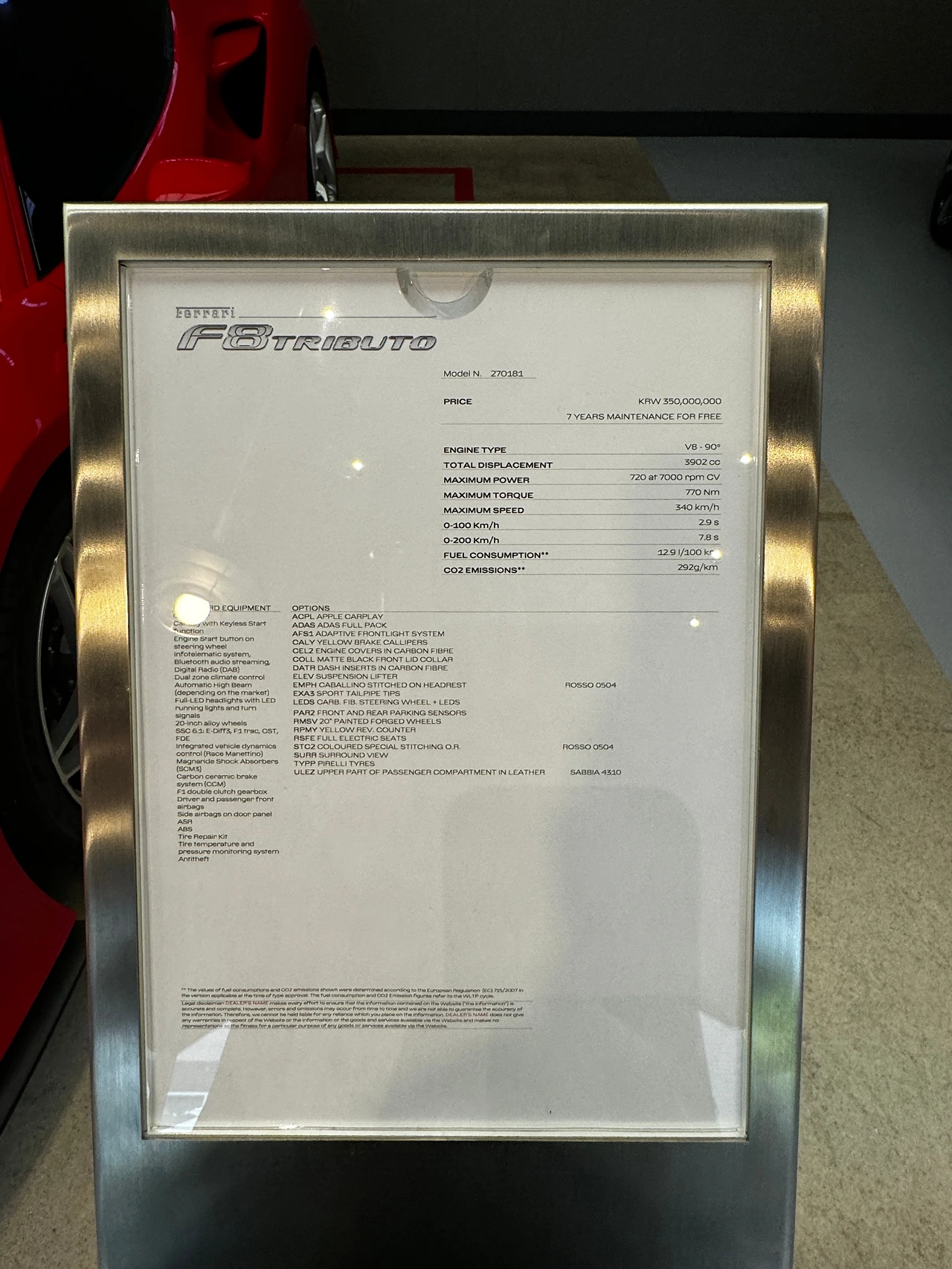 가격이요? 실내에 있던 차들 중에는 SF90 스트라달레가 7억 6천만 원이었습니다. 사진에 있는 노란색 GTC4 루쏘 T가 2억 6천만 원으로 가장 싸고(?), 다음이 파란색 488 스파이더가 3억 500만 원이라네요. 가장 마음이 끌렸던, ‘자연흡기 대배기량 고회전 엔진’에다 지붕까지 열리는 ‘812 GTS’는 7억 5천만 원으로 ‘아직’ 가격이 높네요. ㅎㅎㅎㅎㅎㅎㅎㅎ