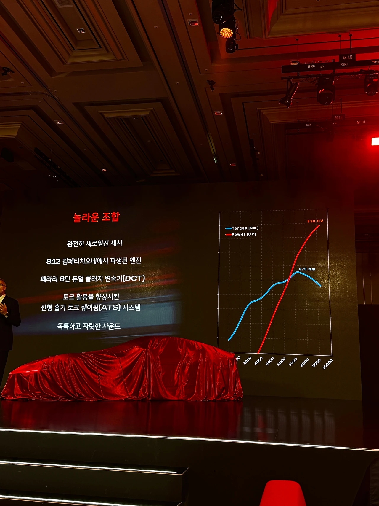 페라리의 새 기함인 12칠린드리 론칭에 다녀왔습니다. 전기모터의 도움이 없는 순수한 내연기관차고요, ‘12실린더’라는 이름처럼 V12 6.5L 830마력 엔진을 얹었습니다.