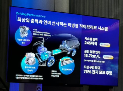 무엇보다 놀란 건 파워트레인이었습니다. 144마력 가솔린 1.5L 터보 엔진, 100kW(134마력) 및 60kW(80.4마력) 두 개의 모터, 토크컨버터와 두 개의 유성기어 세트로 3단 변속을 하는 변속기의 조합입니다. 복잡하지요?