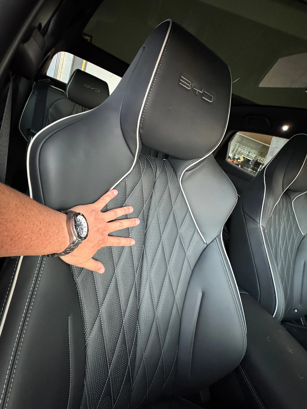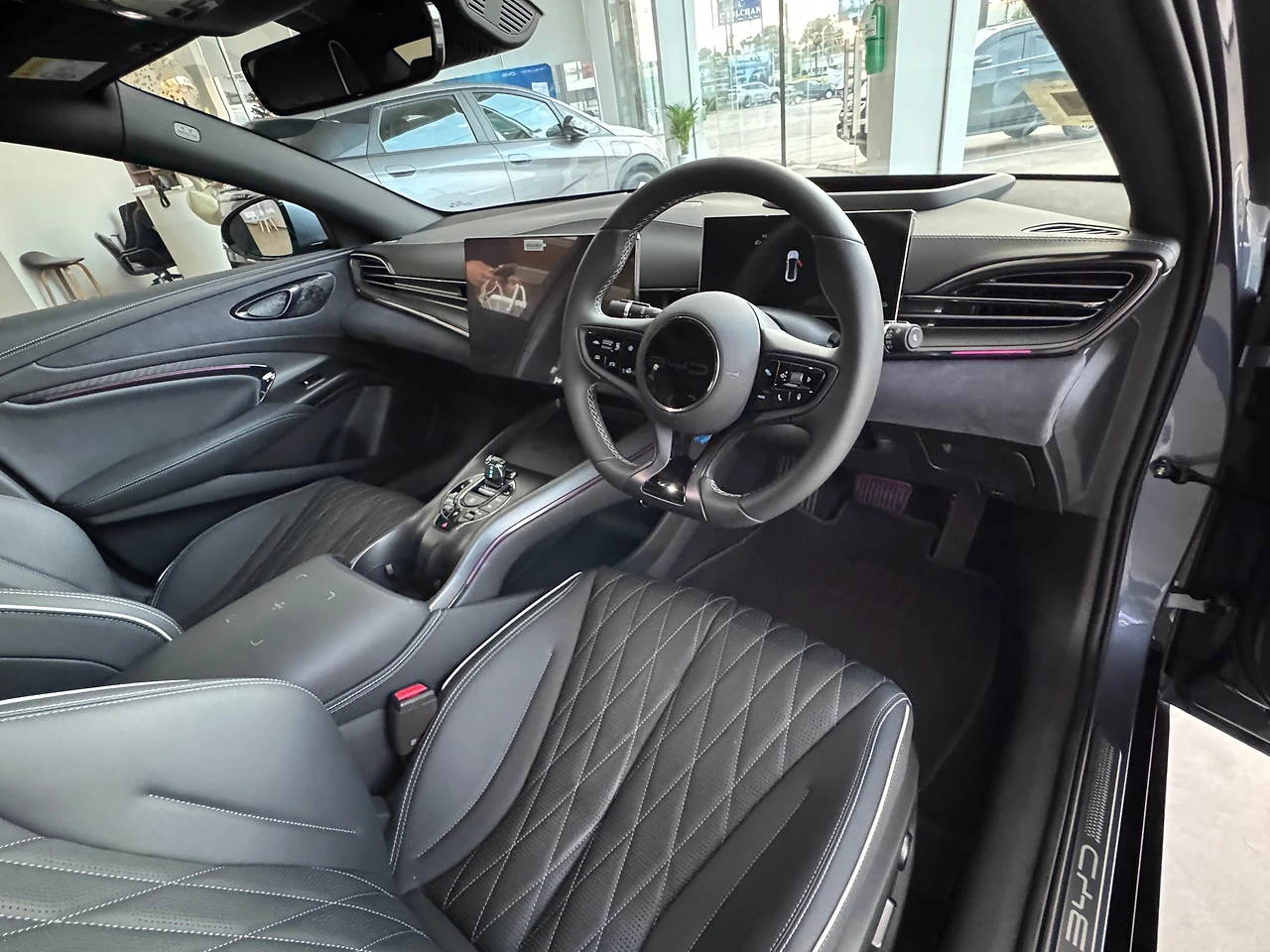 크기가 4800*1875*1460, W/B 2920mm입니다. 현대차 아이오닉6가 4855*1880*1495, W/B 2950mm니까 살짝 작은 크기입니다. 실내공간 차이는 거의 없는데 2열 다리와 헤드룸이 좀 작게 느껴지는 대신 트렁크는 확실히 넓더군요. 전시차가 최고급 모델인 AWD 퍼포먼스라 스포츠시트가 달렸는데 표면의 재질과 만듬새, 앉았을 때의 쿠션 등이 적당했습니다. 도어트림과 센터콘솔 주변의 스위치들의 움직임, 작동 느낌과 마감도 훌륭했습니다. 만약 태국 현지 가격 기준(현지 생산 또는 중국차 무관세 기준)이라도 한국에서 경쟁력이 있겠다 생각이 들더군요.