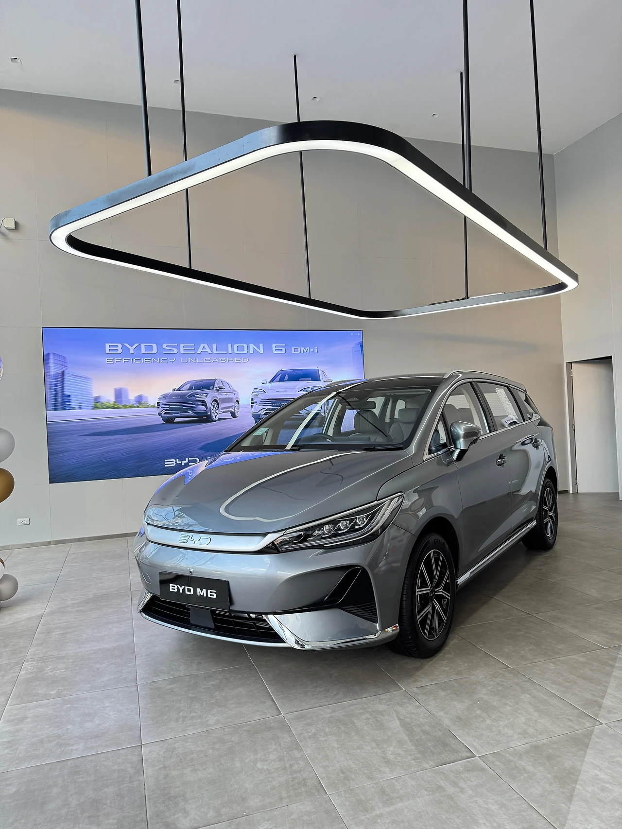 그럴 만도 한 것이 BYD는 2023년 3만 650대의 전기차를 팔아 이 부문 1위에 올랐습니다. 준중형급 해치백인 아토3가 1만 9천대, 준중형 SUV인 돌핀이 9400여 대, 중형 세단 씰이 1800대입니다. 실제 전시장 앞에도 아토3의 새 차와 시승차가 있었습니다. 여기에 태국에서 인기 높은 세그먼트인, 6/7인승 준중형급 미니밴인 M6가 새로 론칭했더군요. 소형부터 중형급까지 라인업을 갖춘 셈입니다. 여기에 중형급 PHEV인 실리온 6 DM-i가 꽤 잘 팔린다고 합니다.