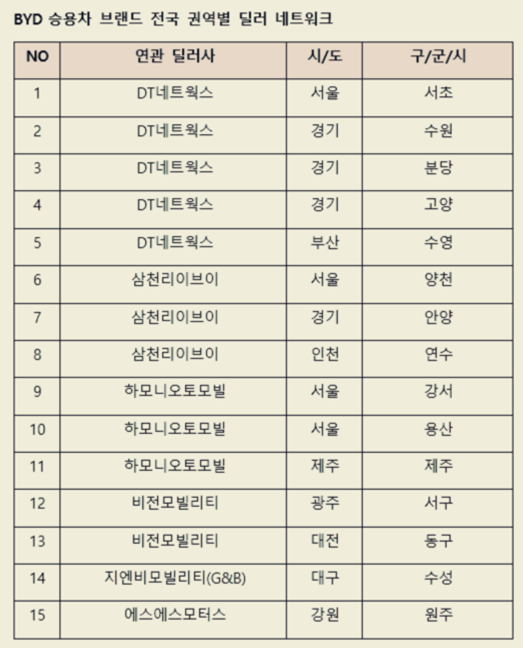 오늘 중국 BYD가 국내 판매 네트워크를 발표했습니다. 첫 사진 속의 6개 딜러사 15개 전시장입니다. 이걸 보면서 든 생각을 공유합니다.