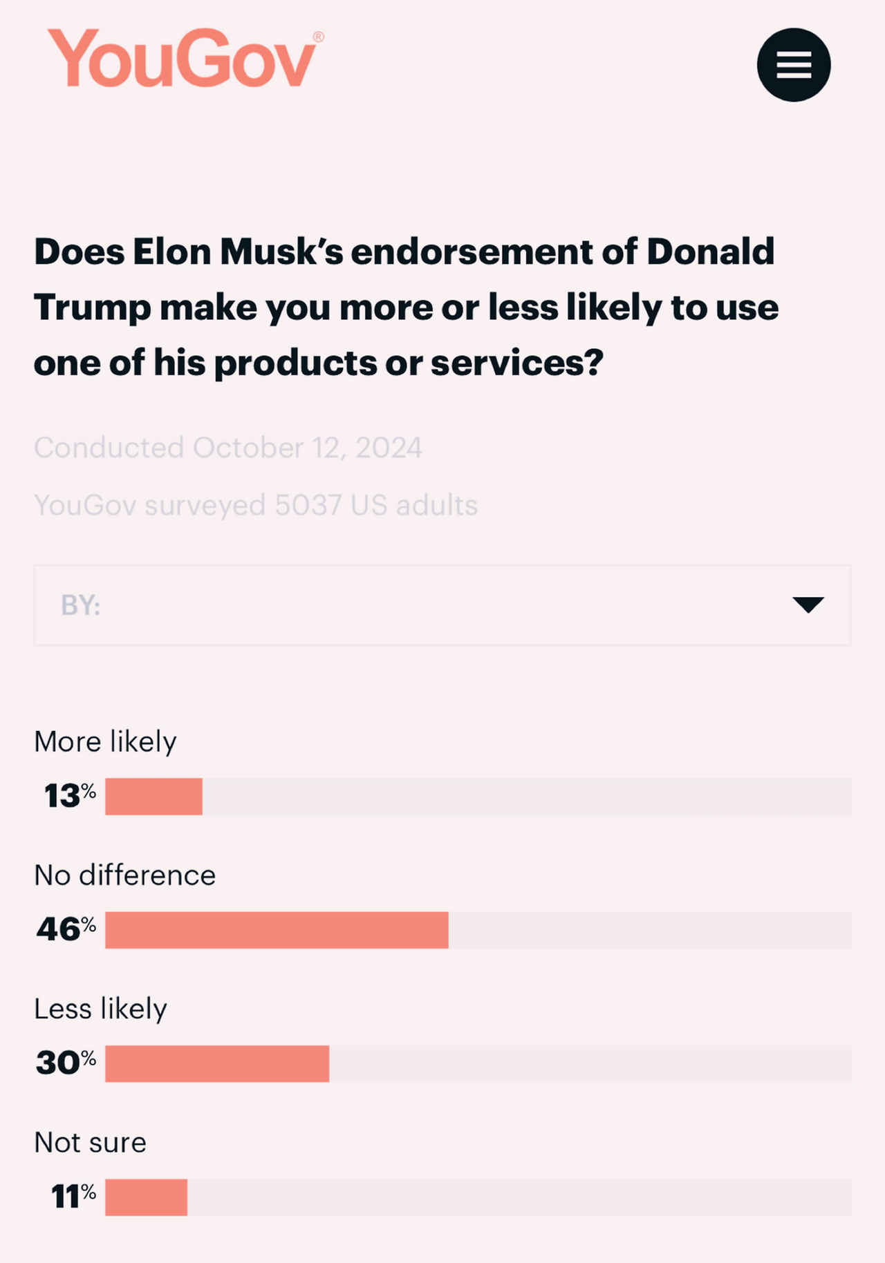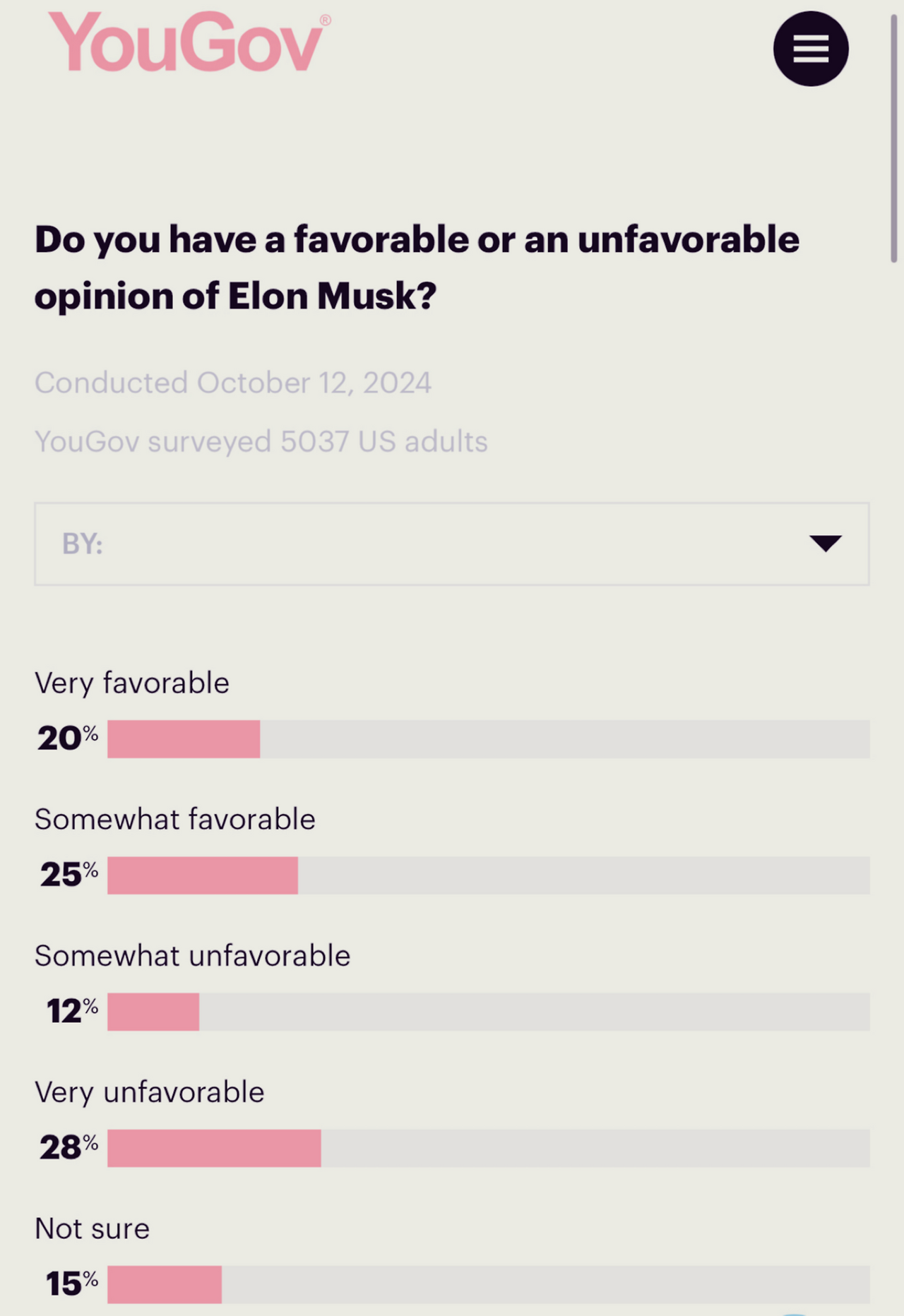 그리고 늘(?) 이야기 나오는 일론 머스크 개인에 대한 이슈도 긍정적이지 않은 영향을 줄 것으로 보입니다. YouGov라는 곳에서 미국 성인 5037명을 대상으로 2024년 10월 12일 설문조사를 했습니다. 일론 머스크에 대한 호불호 질문에는 호감 45%와 비호감 40%가 나왔습니다.