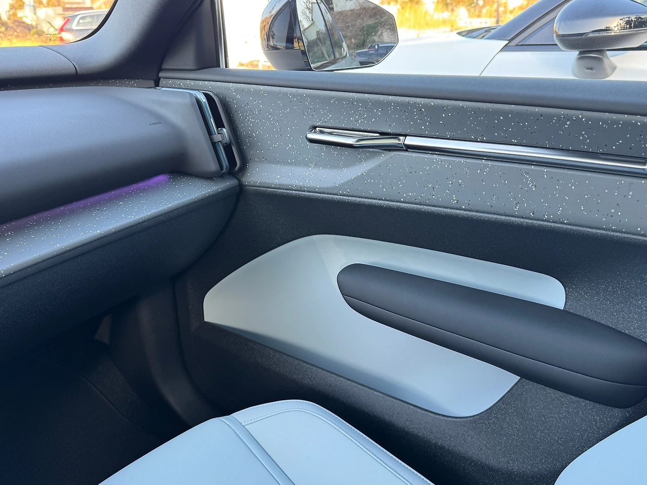 대시보드 아래 스피커를 배치한 사운드바 타입의 하만카돈 프리미엄 사운드는 낯설 건 아닌데 그래도 조금은 새롭더군요. XC40의 하만카돈 오디오는, 도어의 미드/우퍼를 대시보드 안쪽 엔진룸에 다는, ‘에어 우퍼 테크놀로지’를 썼거든요. 이때는 트위터가 A필러에 있었는데, EX30은 윈드실드 아래 사운드바 형태로 들어갔습니다. 사람의 귀는 옆으로 달려 있지만 눈은 정면을 보기 때문에, 특히 운전하며 앞에서 들리는 음악이 자연스럽다고 할 수 있습니다. 물론 그간 30년 동안 좌우 도어에서 나던 소리에 익숙한 사람이 적응하는 데는 시간이 필요하고요. 1040W의 앰프의 핸들링 파워에 조절 폭이 큰 이퀄라이저 등은 시승 내내 오디오를 즐기기 좋았습니다. 도어 트림에 큰 수납공간이 생겼고요.