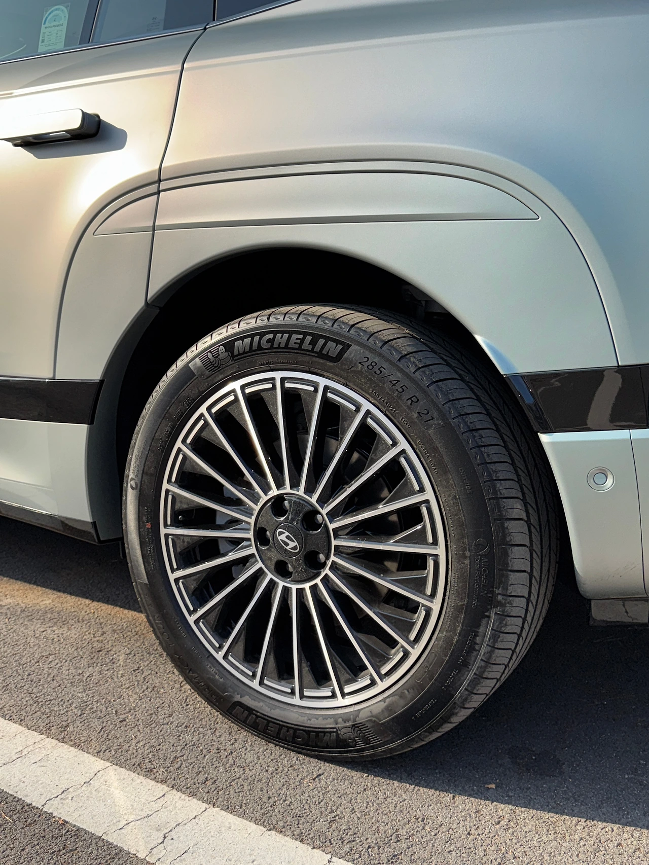 21인치 휠은 겉의 얇은 스포크를 밝게, 안쪽 블레이드를 검정으로 처리해 공기저항을 줄이며 디자인도 잡았고요.