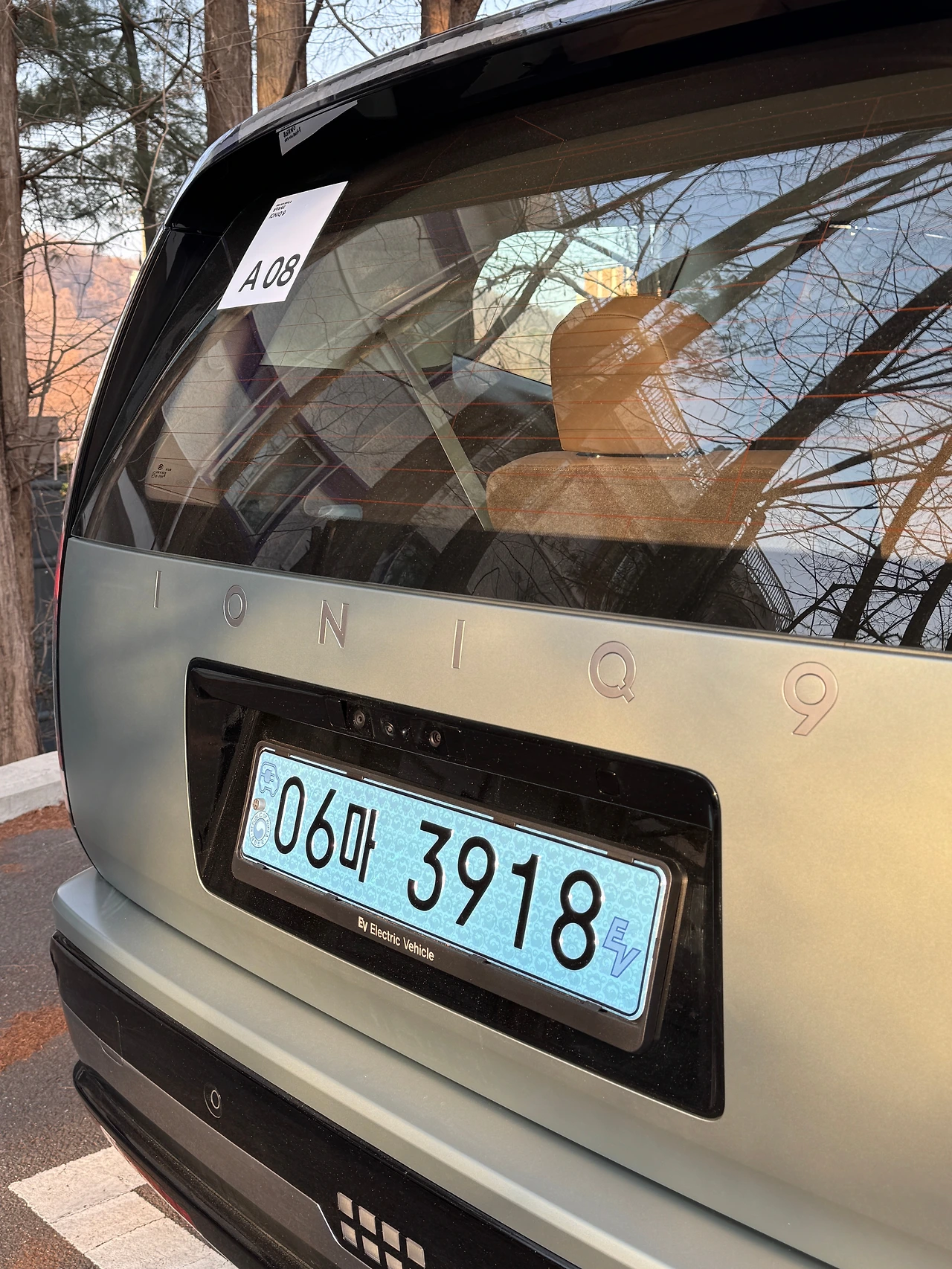 현대자동차의 순수전기차, 아이오닉 브랜드의 플래그십 아이오닉 9입니다. 시승차는 6인승 21인치 성능형 4WD에 트레일러 패키지만 빠진 9407만 원입니다.