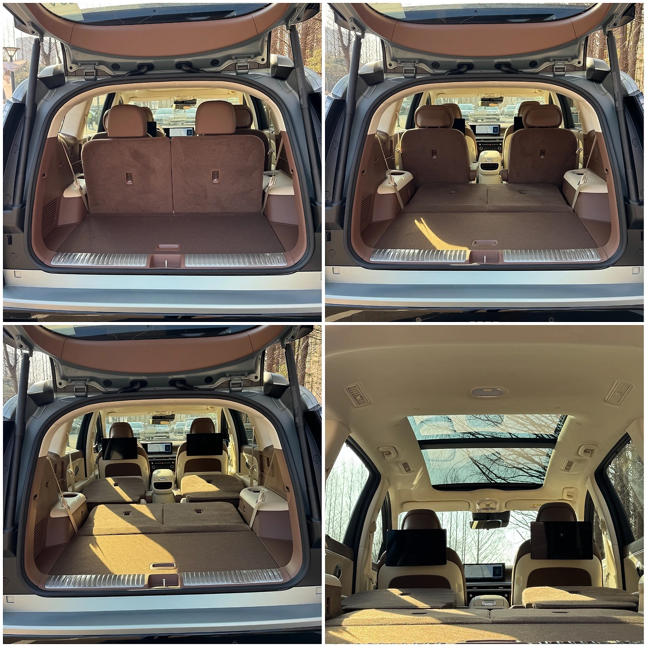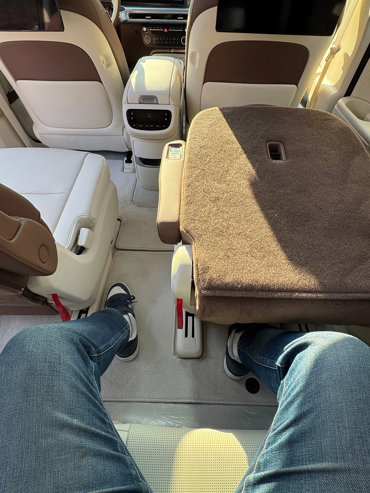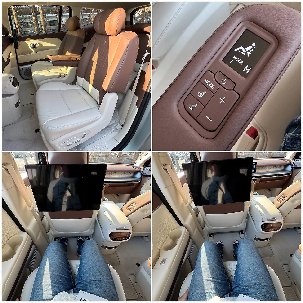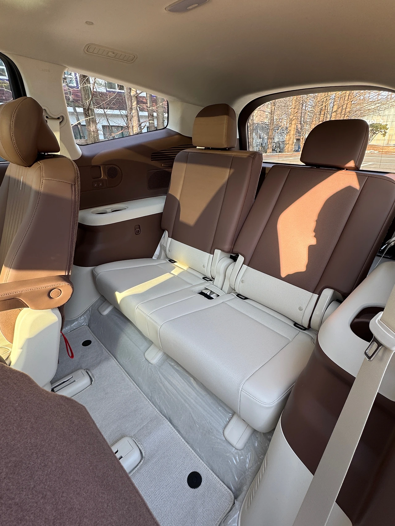 공간 자체는 충분합니다. 측면추돌 평가가 강화되는 추세 때문에 시트들이 가운데로 모인 건 그러려니 하는데 승하차가 불편해진 것도 어쩔 수 없더군요. 3열에서는 2열 사이 공간이 좁아 발을 잘 딛어야 빠져나올 수 있고요. 2열 전동 폴딩 시간을 줄이거나 기계식 원터치 폴딩 기능이 있으면 좋겠습니다. 2열 다이나믹 바디케어(안마) 기능은, EV9보다 강해진 건 맞으나 아직도 효용성을 모르겠습니다. 에르고모션 시트의 그 꾹꾹 눌러주는 느낌과 차이도 크고요.