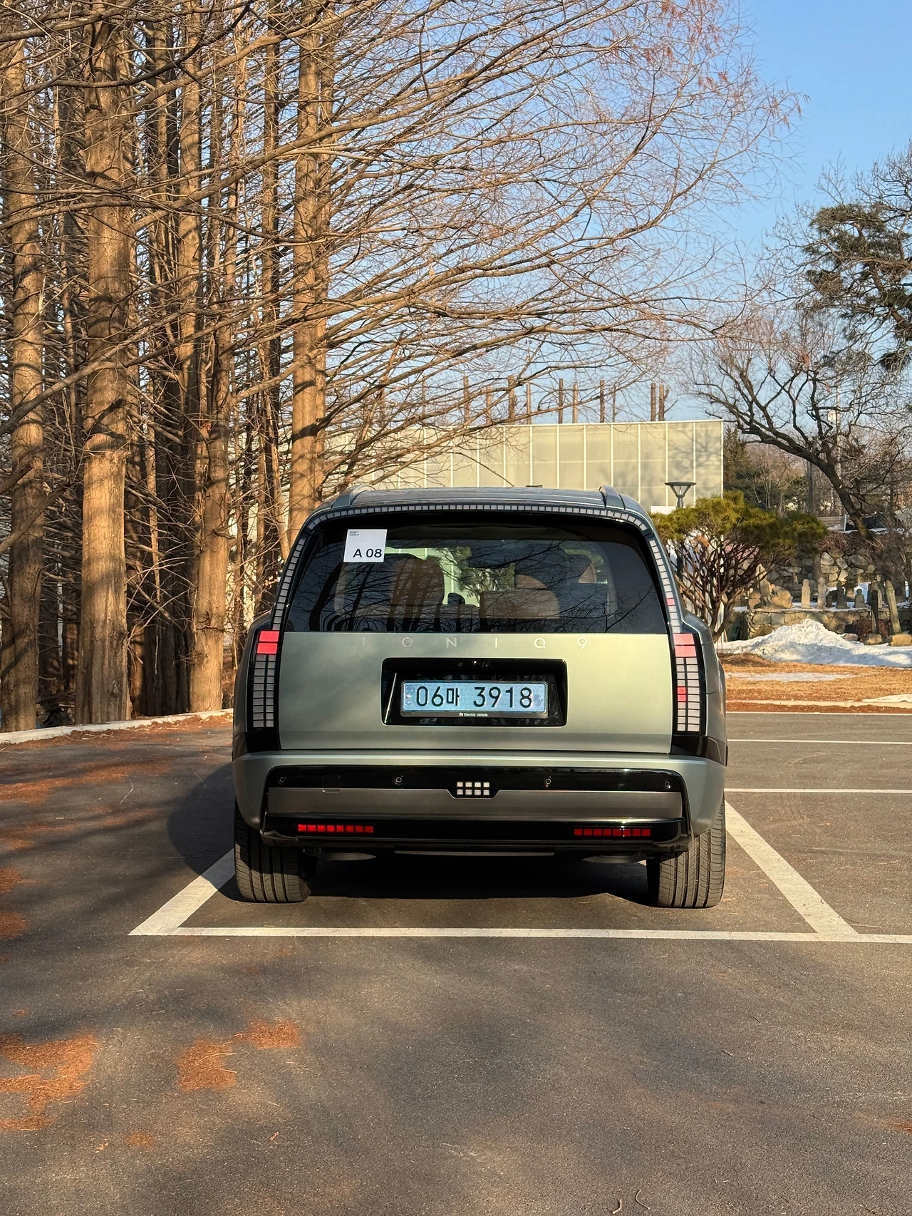 디자인은 ‘아이오닉 7’ 콘셉트카를 여러 번 보았기에 익숙합니다. 휠 에어커튼이 없어지며 한 덩어리가 된 전면부터 매끈하게 모아 떨어지는 후면까지, 정말 멋집니다. 다만 시승이 오후라 해를 등지고 목적지로 갔는데, 픽셀 케이스 안에 있는 테일램프가 햇볕 때문에 희미해지더군요. 마지막 사진을 보면 그늘에 있는 왼쪽과 오른쪽이 다릅니다. 전체가 햇볕에 반사될 때 브레이크 작동 유무를 알기가 애매하겠다 생각이 들었습니다.