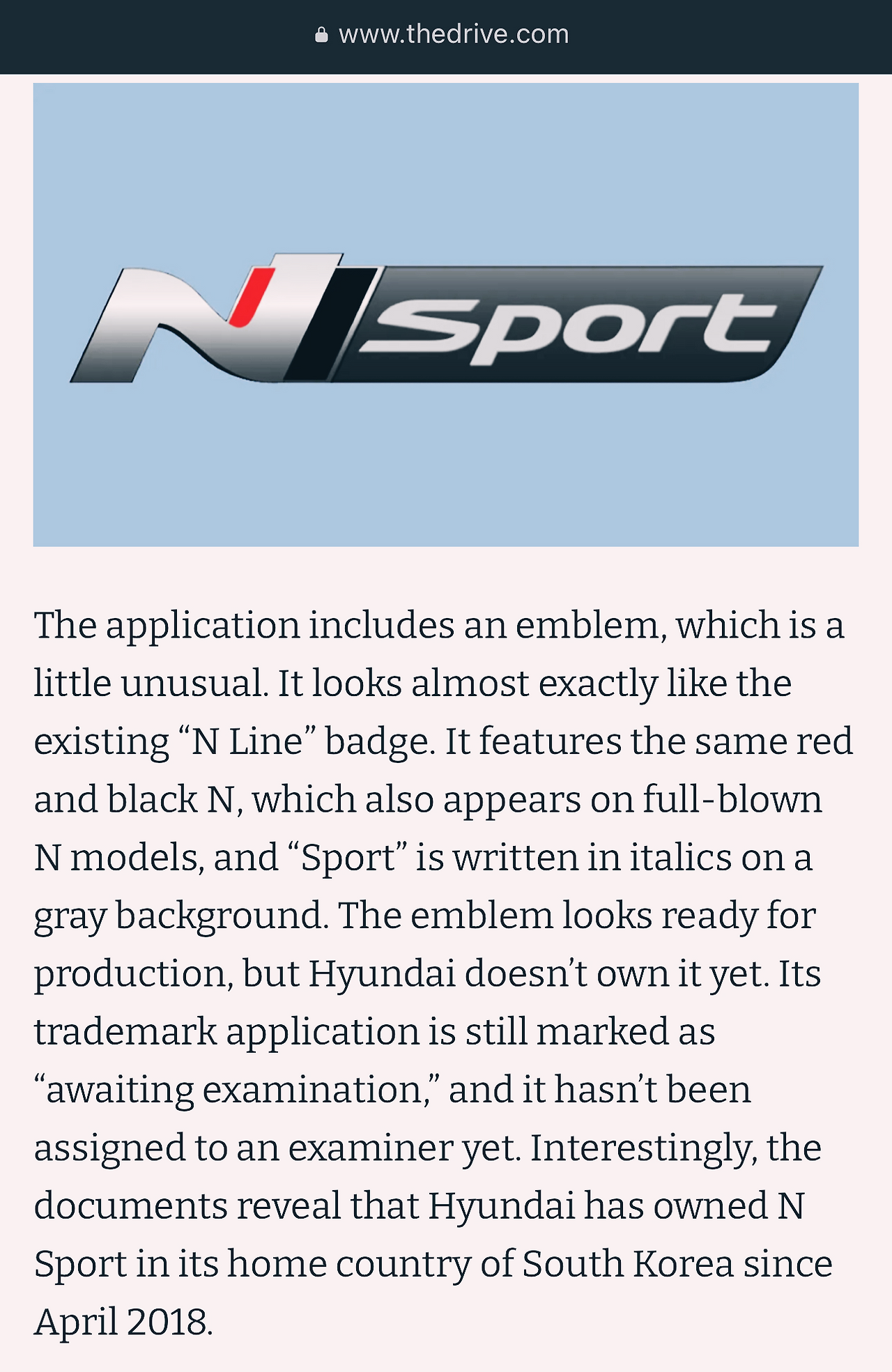 미국 더 드라이브가 미국 특허상표청(PTO)에 현대자동차가 ‘N sport’ 상표를 새로 등록 신청했다는 것을 보도했네요. 기사를 읽어 보면 다양한 운송수단에서 이 이름을 앞으로 ‘잠재적으로 사용(potentially use)’ 하기 위해 신청한다고 되어 있습니다. 아직 승인이 난 것도 아니고 제품에 반영될 예정도 아니긴 하답니다.