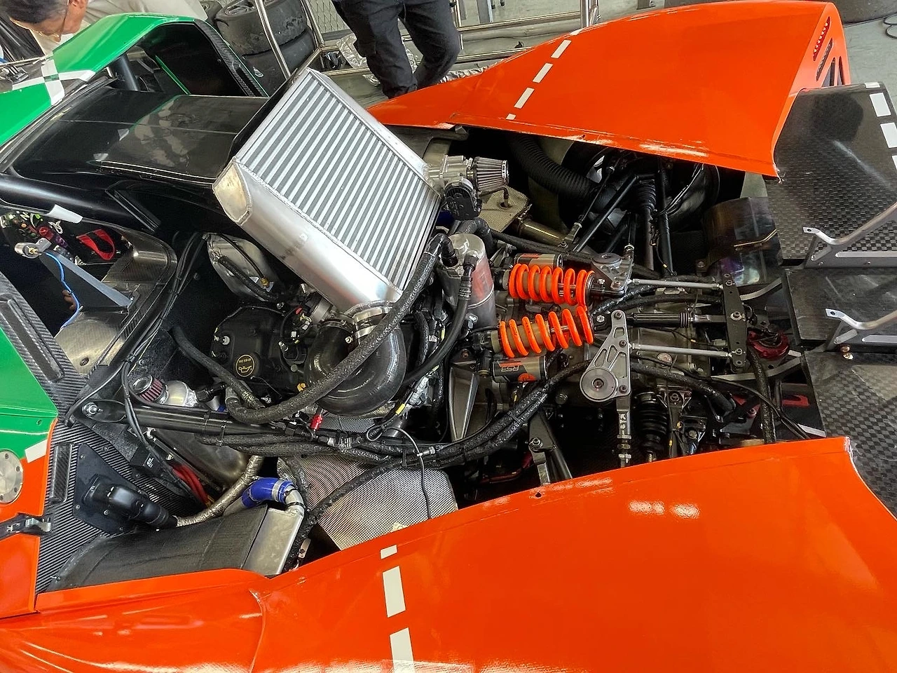 스포츠 프로토타입인 REVOLUTION 경주차를 타게 되는 데, 리버리가 로터리 엔진으로 르망 24시 우승을 차지했던 마쯔다 787이군요. ㅎㅎㅎㅎ 포드 에코부스트 V6 엔진을, 크랭크 축에 직접 연결된 슈퍼차저로 과급하는 형태입니다. 이거 멋지네요.
