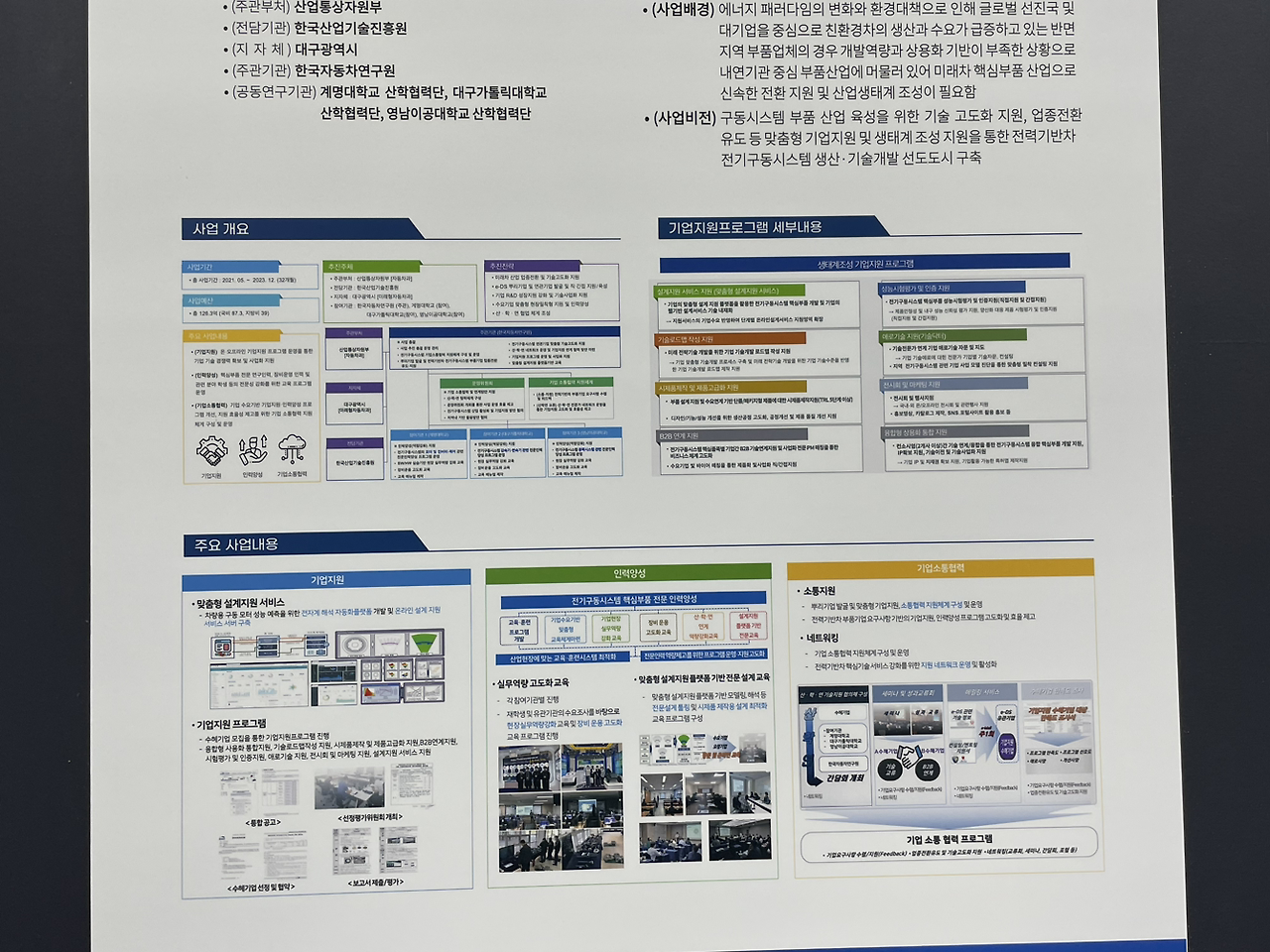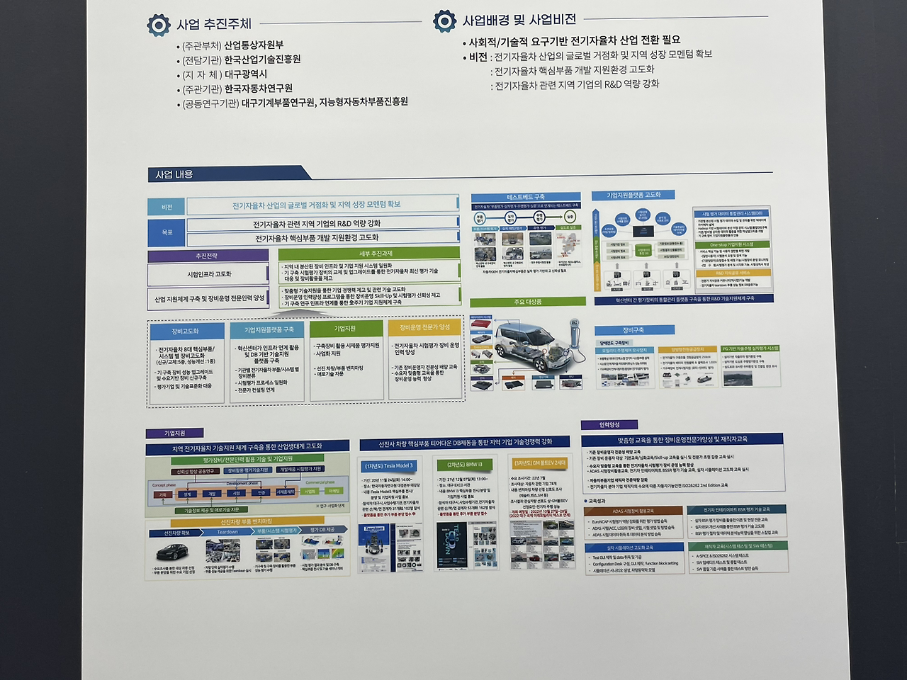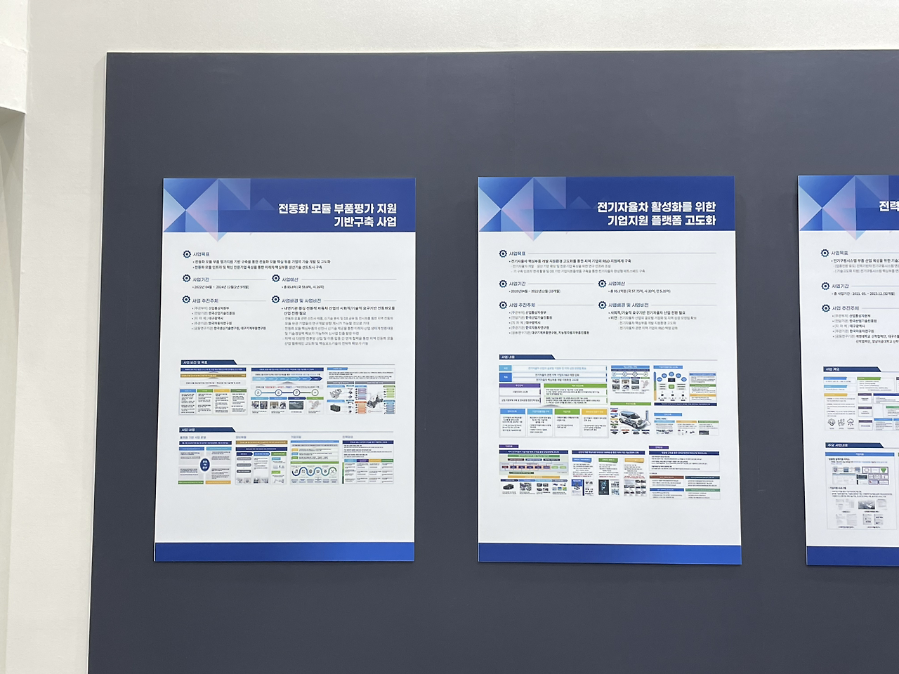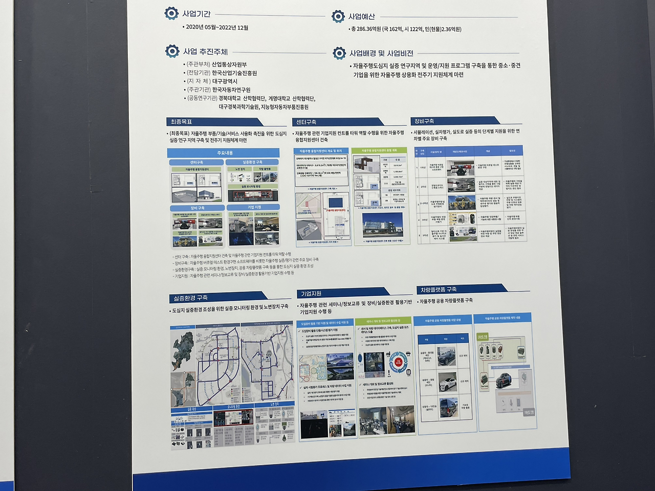 자동차와 관련된 여러 연구 기관 중, 한국자동차 연구원(KATECH)의 부스입니다. 대구경북본부에서 연구 중인 자율주행차를 전시했는데, 특히 벽에 붙은 사업 소개 포스터들이 꼼꼼하게 읽어볼 내용들이 많았습니다.
