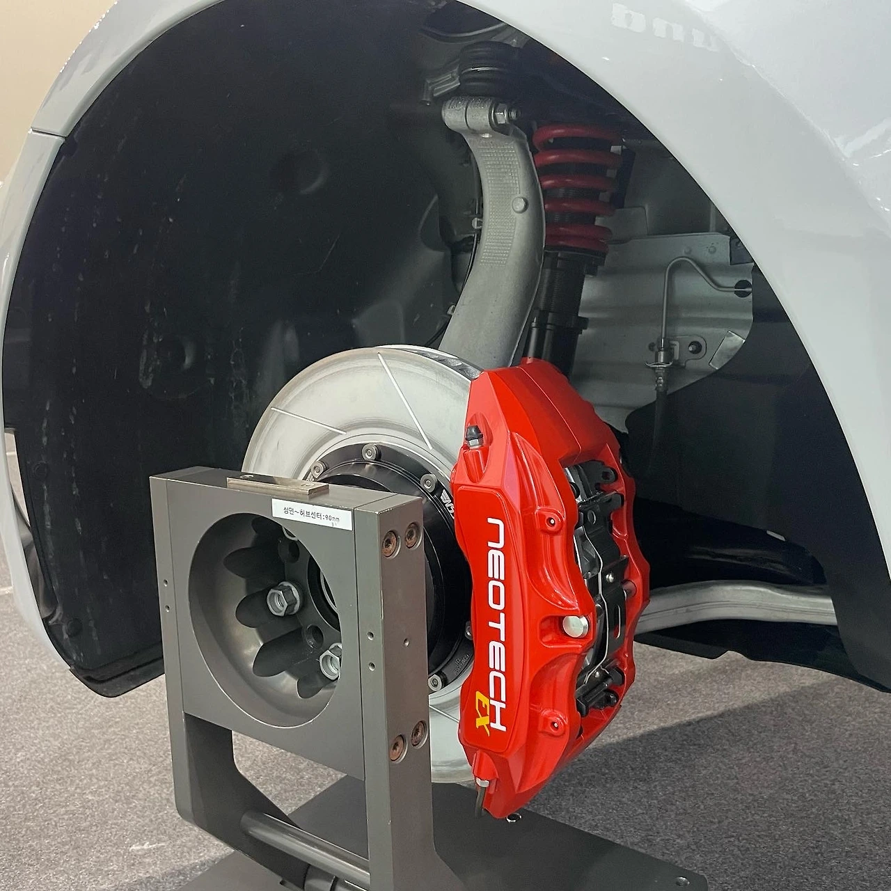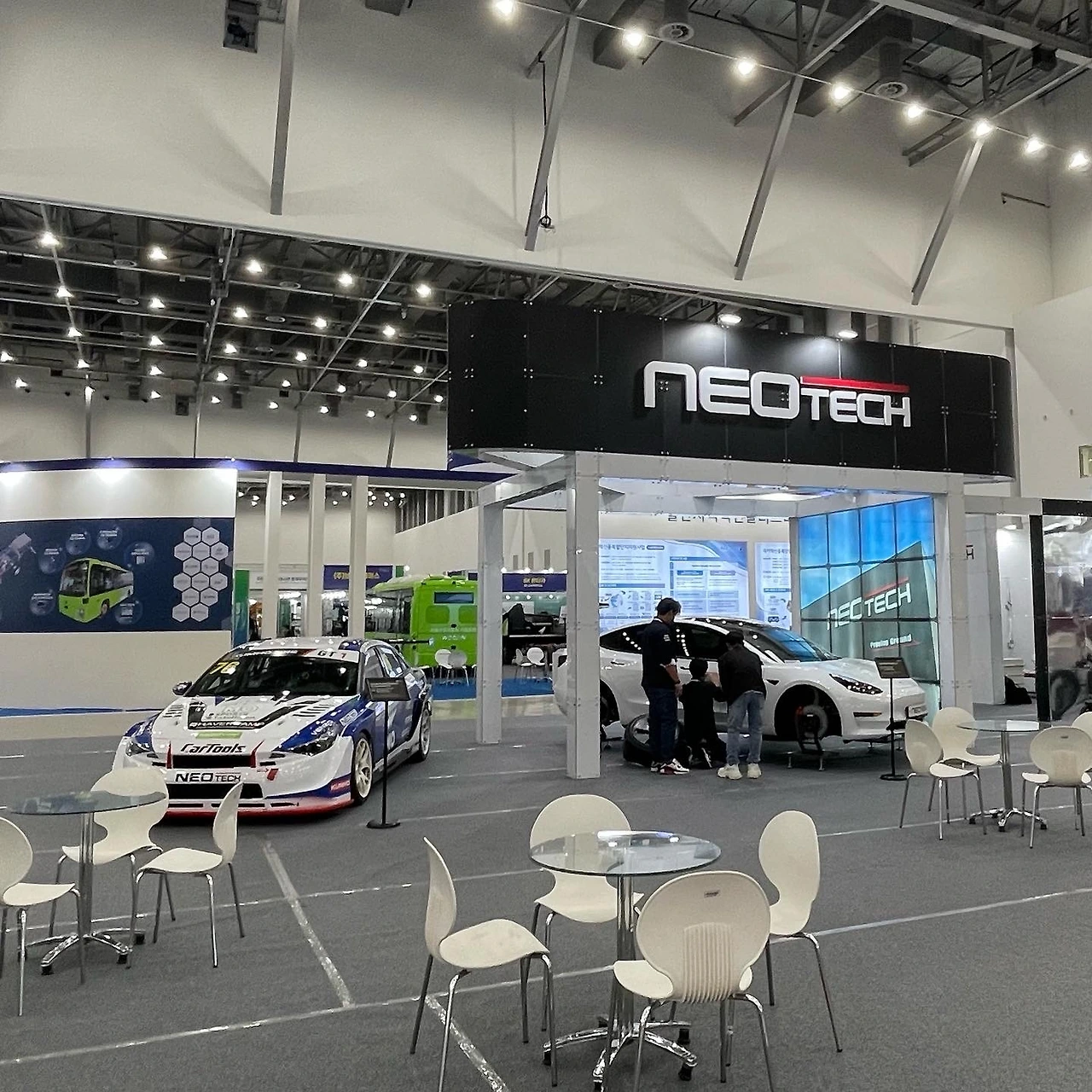 우선 전통(!)의 국내 서스펜션 업계 강자인 네오테크입니다. 어찌 보면 자율주행과 전기전자 부품이 전부일 것 같은 전시회에 왜 서스펜션 튜닝업체일까… 싶으실 수도 있는데요. 무거운 전기차는 승차감과 운동성능 잡기가 쉽지 않습니다. 특히 수십 년 자동차를 만들어온 회사가 아니라 모터와 배터리에 바퀴를 단, 순수 전기차만을 만든 테슬라가 그렇습니다. 그래서 테슬라의 모델3 등 차 전용 서스펜션을 내놓았고 인기가 좋다고 합니다.