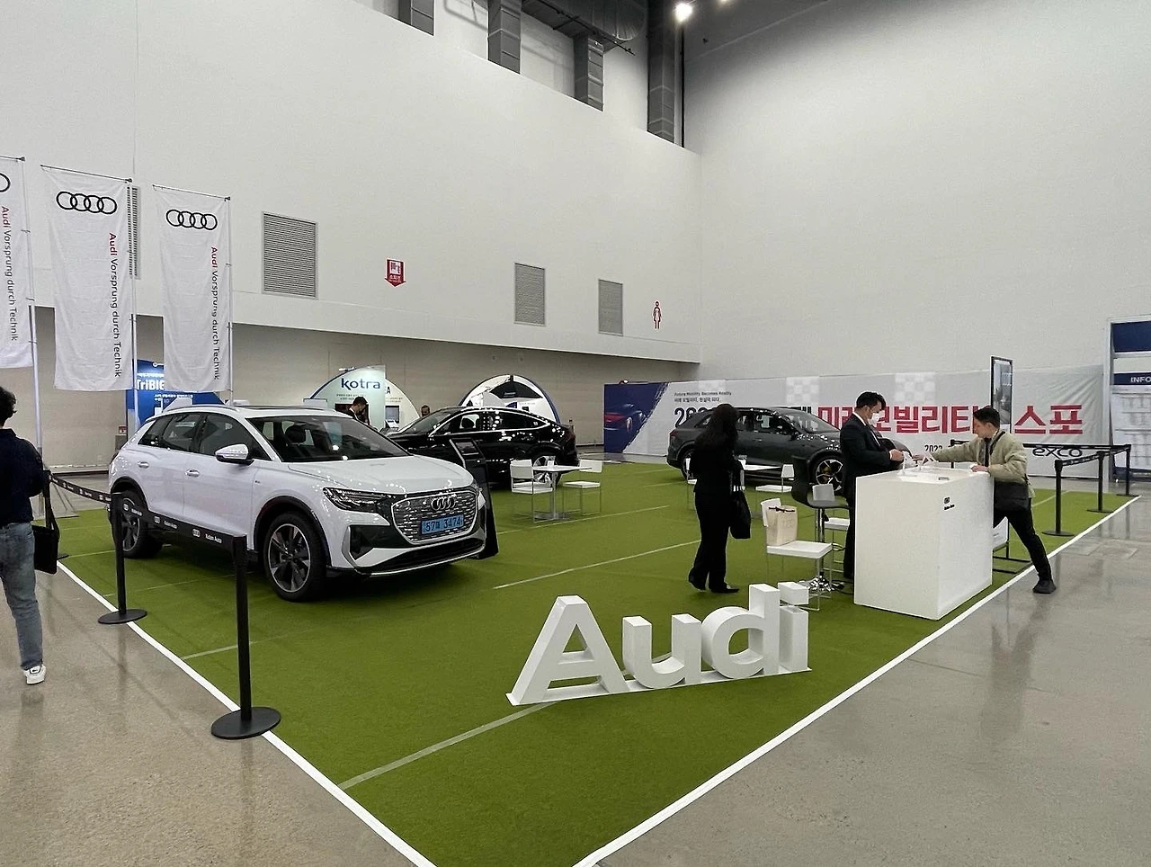 자동차 제조/판매사 부스들을 쭉 올려 봅니다. 현대, 기아, 테슬라가 참여했고 아우디는 딜러에서 전기차를 전시했네요.