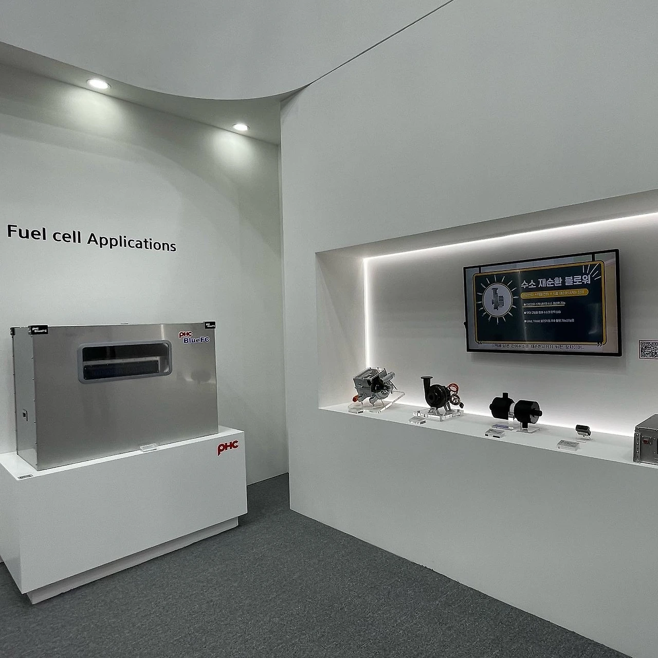 발레오가 속한 PHC입니다. 변속기 등 내연기관용 부품은 물론 미래에 나올 차를 위한 모터-배터리 팩 등도 내놓았고요. 무엇보다 눈길을 끈 것은 10kW의 연속출력을 낼 수 있는 수소연료전지 모듈이었습니다.