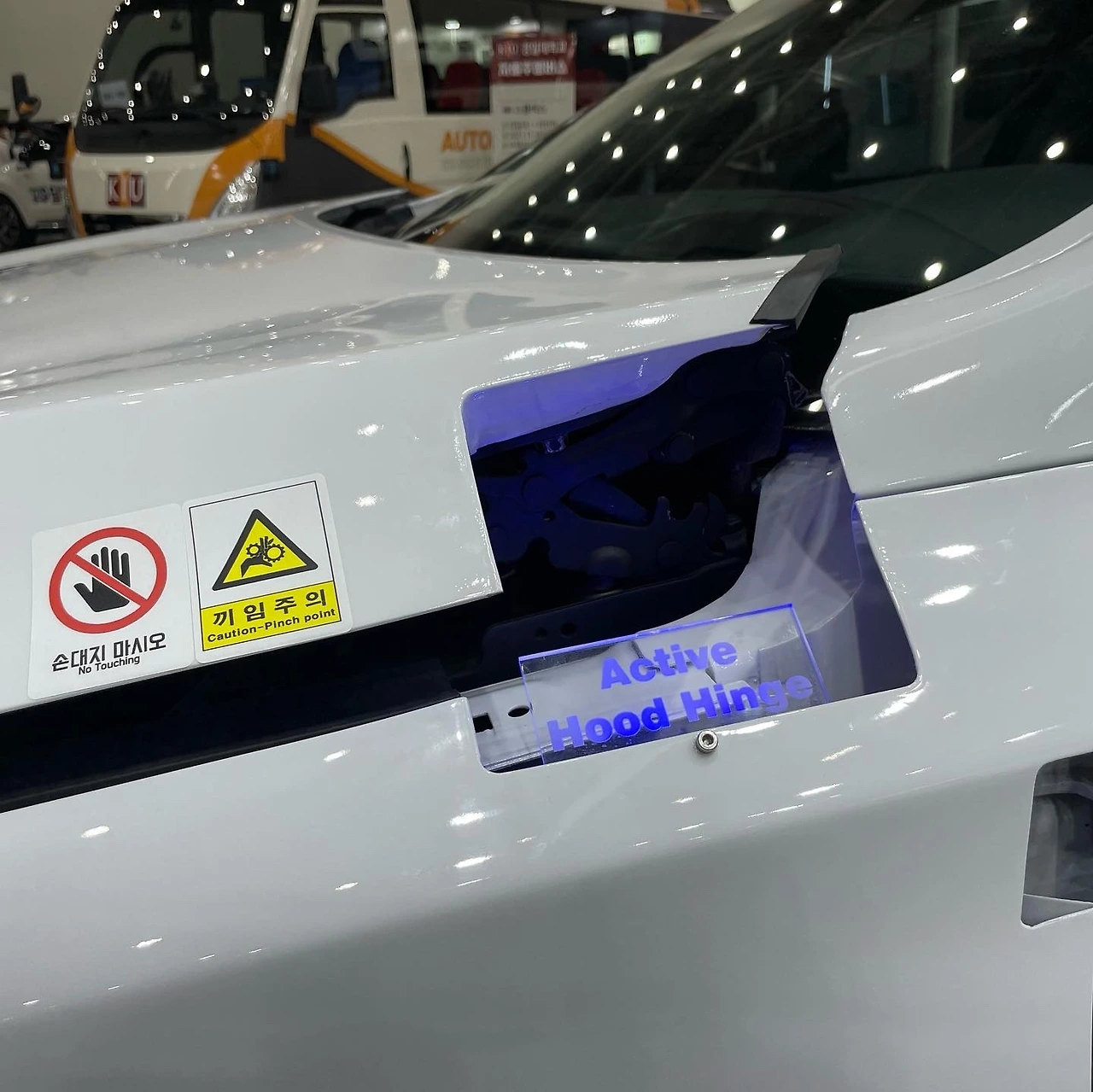 사진은 보행자 충돌 때 후드(보닛)를 들어 올려 머리 손상을 막는, 액티브 후드 리프트 시스템입니다. 이거 비용 때문에 안 쓰는 줄 알았는데 아직도 있다네요. 유럽 쪽은 제네시스 외에도 쓰인다고.