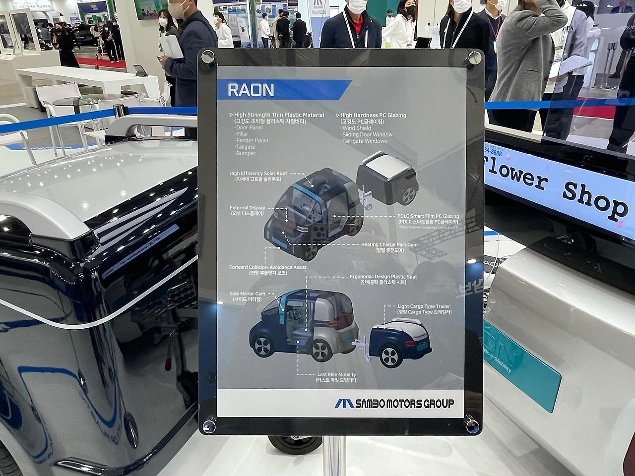 삼보모터스가 내놓은 전기모빌리티 콘셉트카였습니다. 자동차용 플라스틱 제조에 강점이 있는 회사답게 강화 플라스틱 차체에 투과율 조절이 가능한 창 등 재밌는 콘셉트가 많더군요.