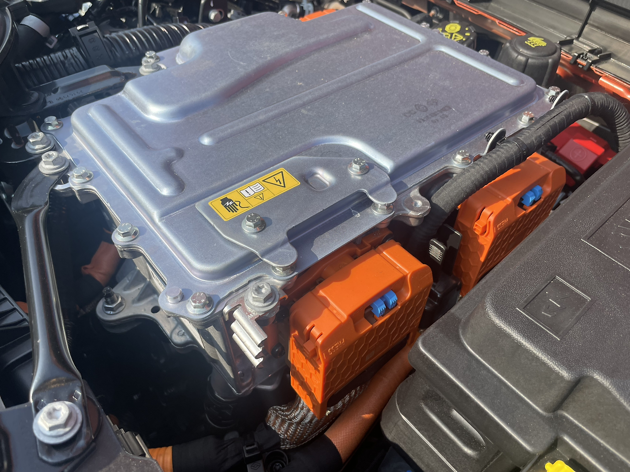 구동을 담당하는 메인 모터가 있고, 엔진의 시동과 1.2kWh 용량의 배터리 충전을 위한 발전 및 엔진 시동/회전수 보정을 담당하는 고전압 스타터 제너레이터 모터 등 두 개가 달립니다.
