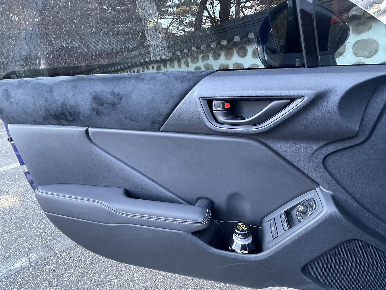 인테리어는 좋게 말해 심플한데, 사실 투박하다고 말하는 것이 정확합니다. 그나마 시승차가 4,630만 원인 프리미엄 모델이라 계기판 위, 도어 위와 시트 등에 스웨이드 재질이 더해졌습니다. 사실 큰 차이 없습니다.