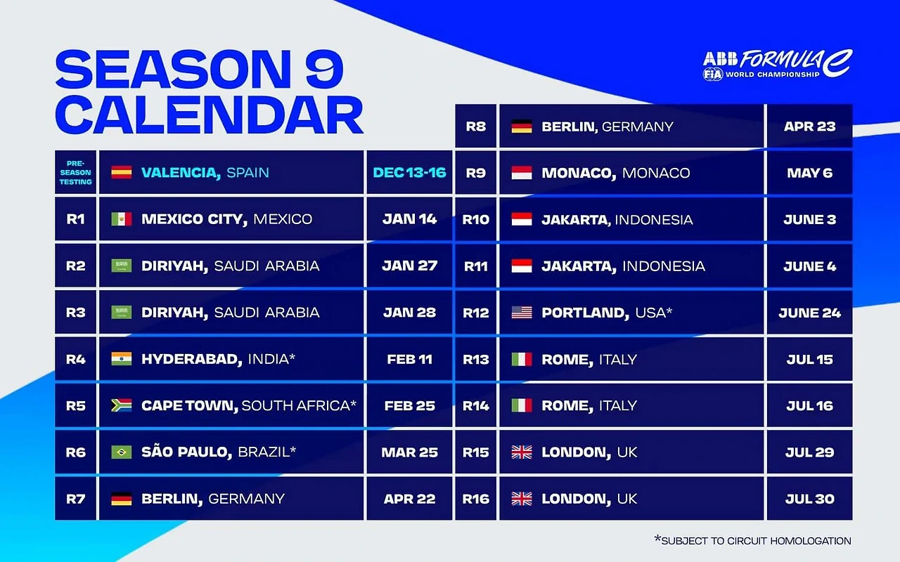 업데이트된 포뮬러 E 시즌 9 캘린더. 5월 열릴 예정이었던 서울 E-PRIX가 없어지고 대신 미국 포틀랜드가 추가되었다는 소식입니다.