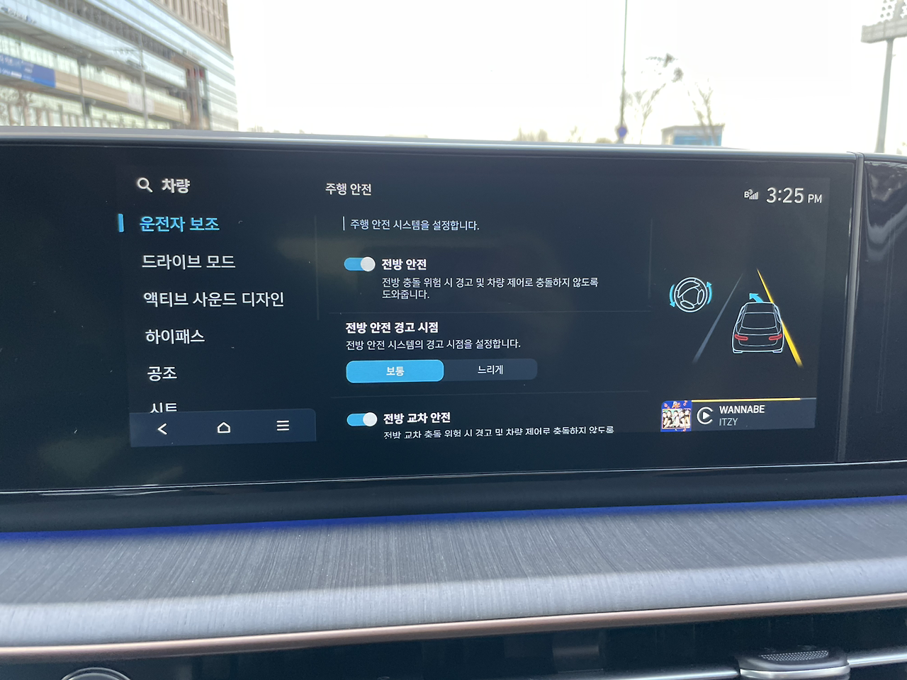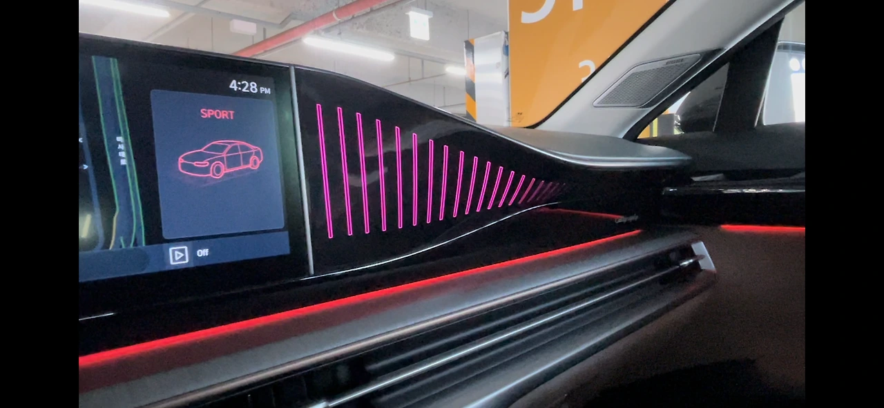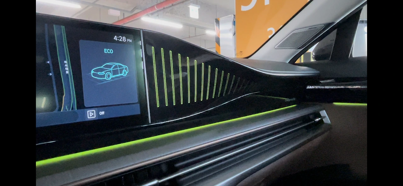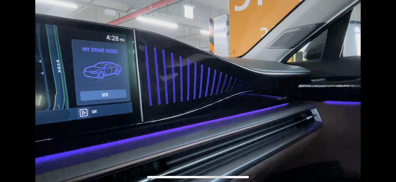 주행모드 변경에 따라 센터 모니터 옆 조명이 바뀝니다. 화면에 어느 모드인 지 보이는 것뿐 아니라 저렇게 바뀌는 것이 화려하게 보였습니다.