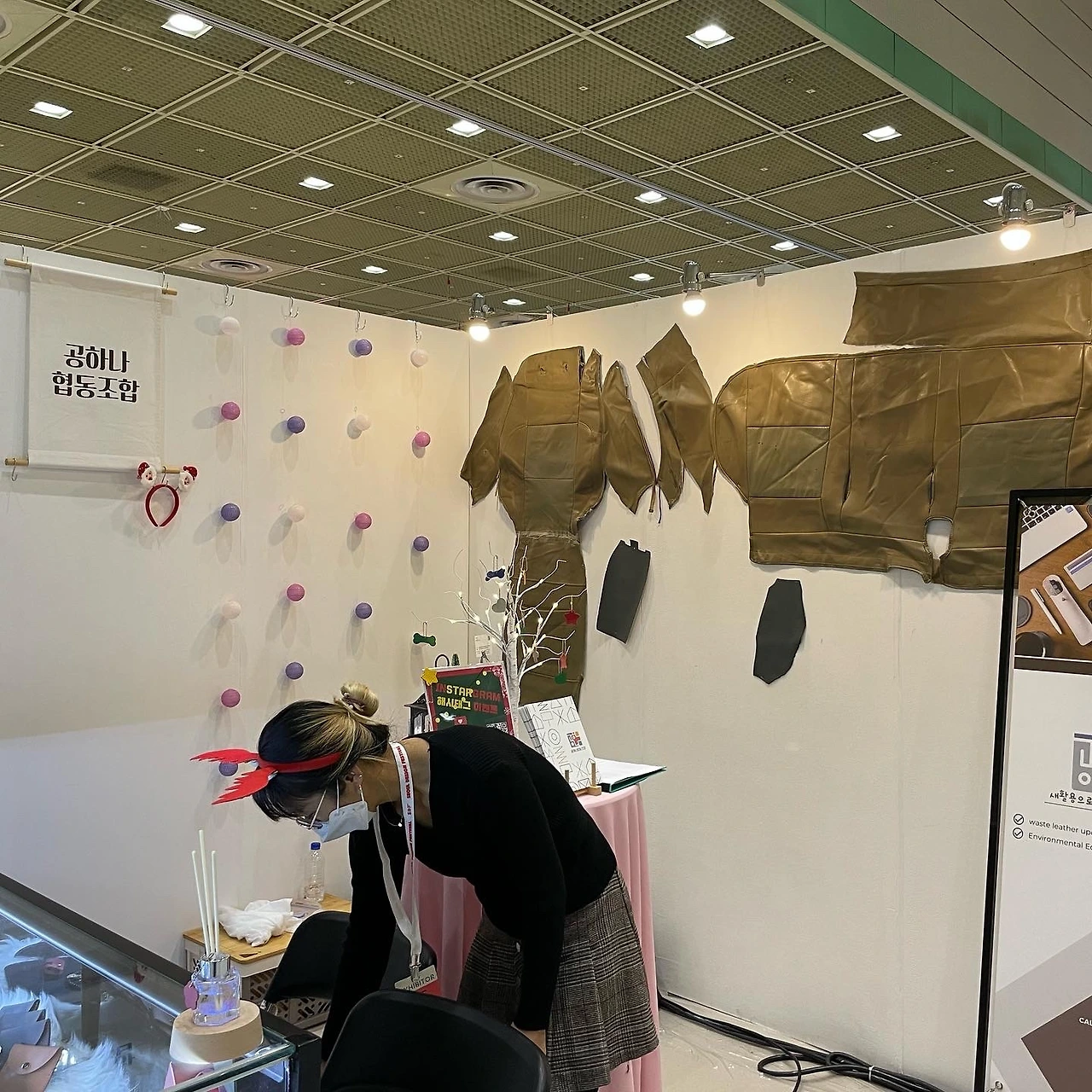 여섯 번째는, 전라도 광주의 공하나 협동조합이었습니다. 자동차 시트와 소파 등을 재활용한 제품을 선보이더군요. 이번 전시 전체에는 이런 재활용(업사이클, 새활용 등으로 쓰이기도 하더군요) 관련 제품들이 많았습니다. 비닐봉지, 플라스틱, 가죽, 나무 등이 많고요.