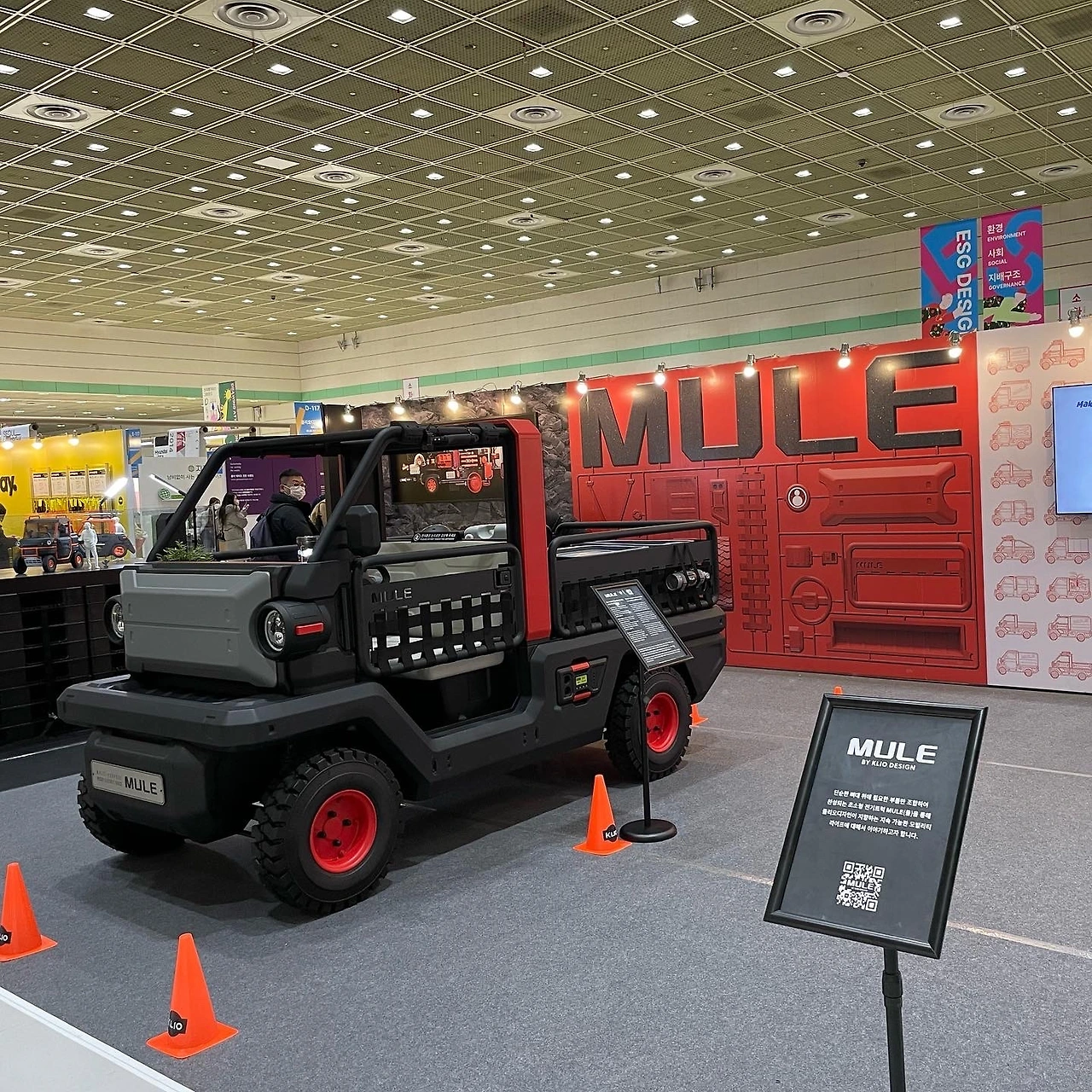 세 번째는 재활용 플라스틱으로 만든 모듈형 자동차 콘셉트. 실물 크기인데 간단한 전기차 플랫폼을 쓰면 현실화도 어렵지 않겠다 싶었습니다. 물론 도로 주행을 하려면 우리나라 법규로는…