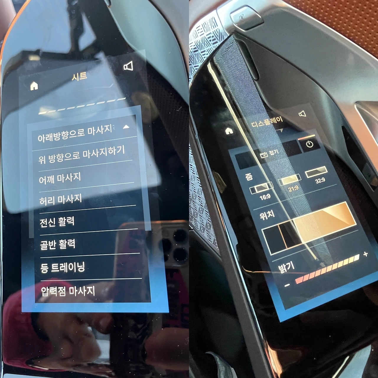 하다못해 뒷자리 독서등의 빛 온도를 높이고 낮출 수 있습니다. 마사지 프로그램도 매우 다양합니다. 32:9 비율의 시어터 스크린은 위치와 화면의 비례, 스크린 자체의 위치까지 조절됩니다. 앞 시트를 조절하면 그에 따라 앞뒤로 움직이기까지, 역시나 섬세합니다.