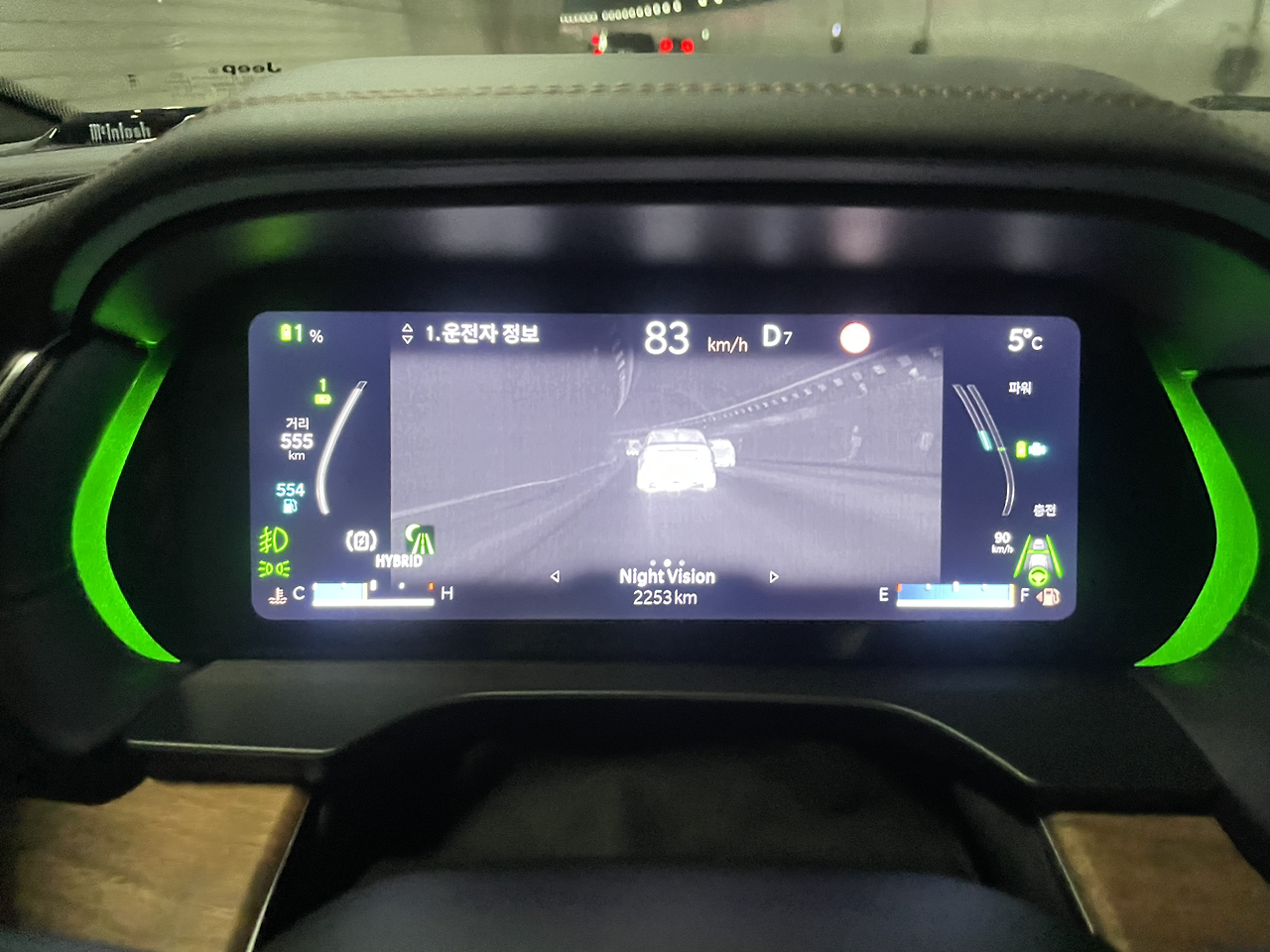 차를 받을 때 배터리가 1%였고요, 처음에는 하이브리드 모드로만 다녔습니다. 모터를 굉장히 적극적으로 사용하기 때문에 배터리가 거의 충전되지 않더군요. 그래도 수시로 꺼지는 엔진에 EV 모드 작동 기간이 길어 평균 연비는 10km를 넘기더군요. 덩치와 무게 생각하면 매우 좋은 편입니다.