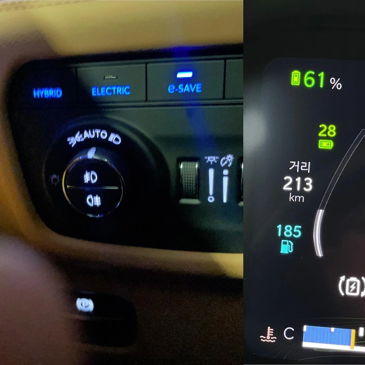 주행 모드 중에 e-SAVE 모드가 있습니다. 배터리 잔량을 유지하거나 충전을 우선으로 하는 겁니다. 저는 강원도에서 복귀하며 고속도로를 달리는 동안, 그러니까 엔진 효율이 좋은 구간에서 사용했고 61%까지 충전해 전기 주행가능거리를 28km까지 높였습니다. 이걸로 서울 시내에 들어와 집 근처를 다닐 때는 EV 모드로만 다녔습니다. 이게 ‘내 집 주변’에서 배출가스를 내보내지 않는, 지프식의 환경보호가 되겠지요.
