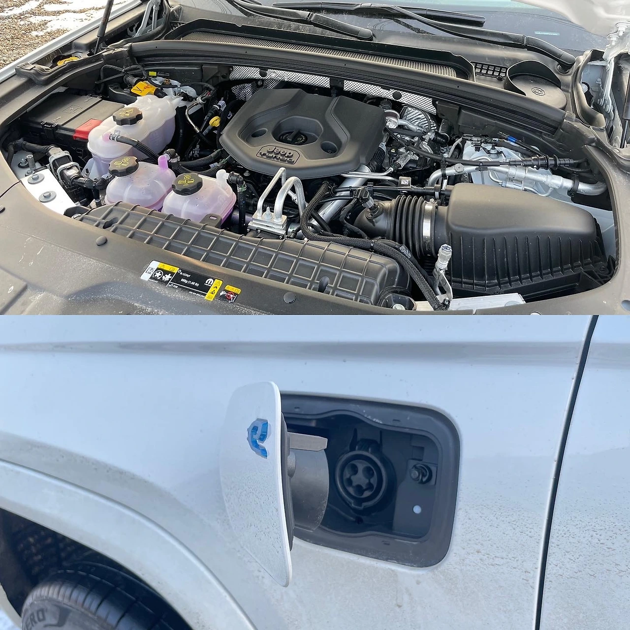 2단 트랜스퍼 케이스, 에어 서스펜션과 사륜구동 시스템에 더해 큰 배터리까지 얹었으니 공차중량이 2555kg으로 무겁습니다. 그럼에도 출력과 토크가 넉넉해 차는 가볍게 움직입니다. 시승차의 문제인 것 같은데, 2단 전후로 변속할 때 충격이 좀 있는 것 제외하고, 엔진 작동여부나 모터 개입 등에 상관없이 매끈하게 달립니다. 전에 탔던 L모델의 3.6L 펜타스타 파워트레인과 비교할 건 아니어도, 충분히 부드럽습니다.