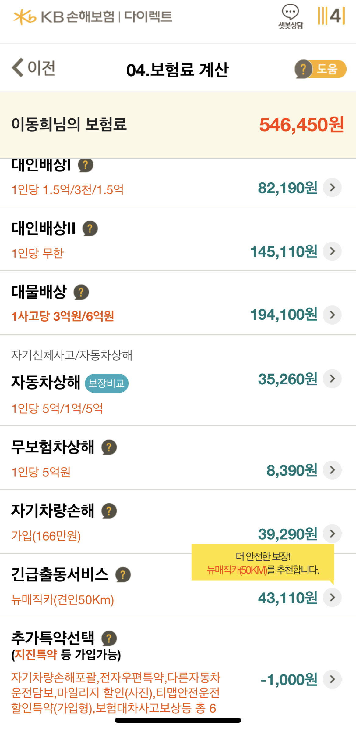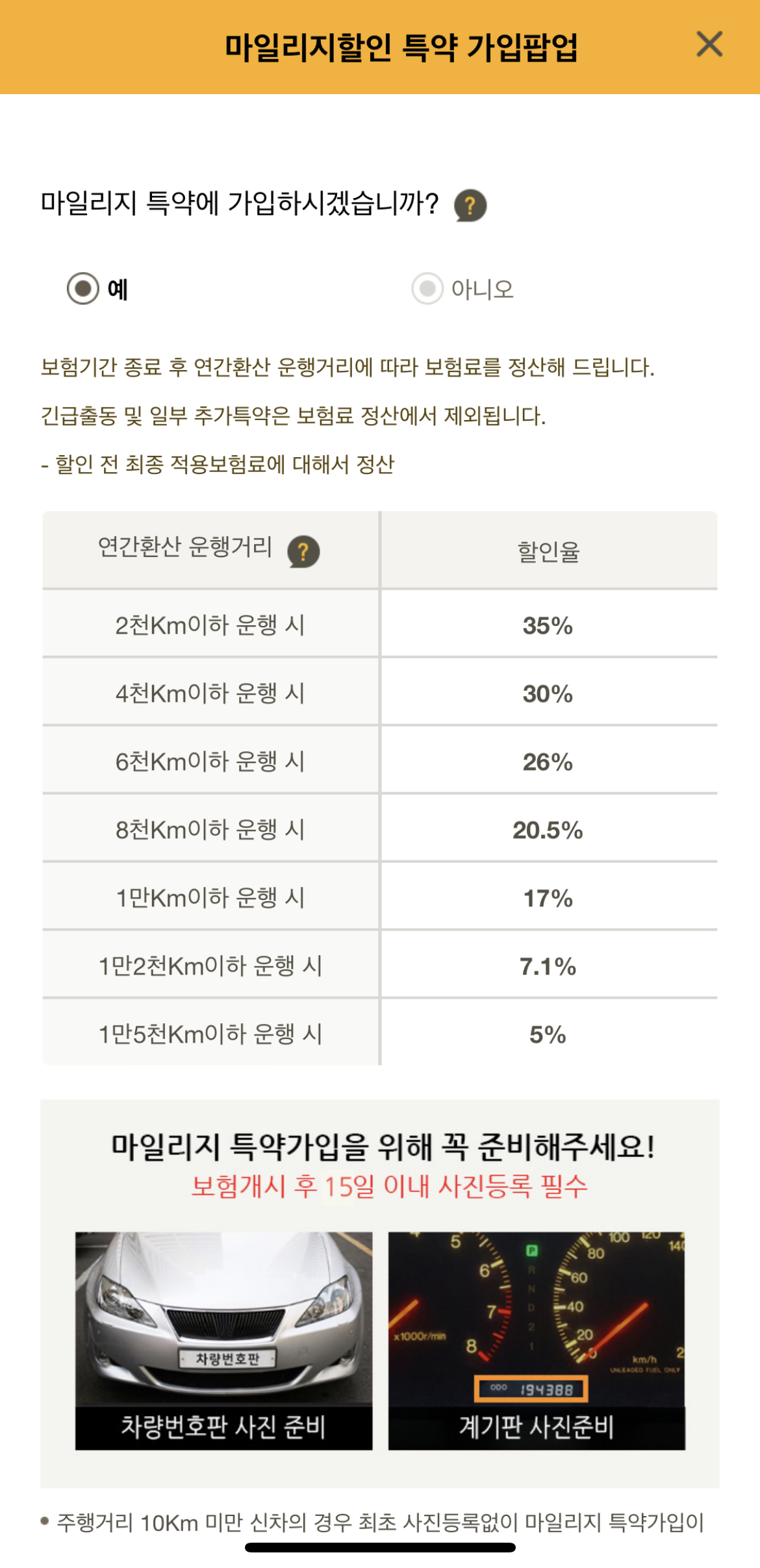 결국 KB와 DB 둘 중의 하나였는데… 여기서 따진 것은 주행거리에 따라 추가 할인을 해주는 마일리지 특약입니다.