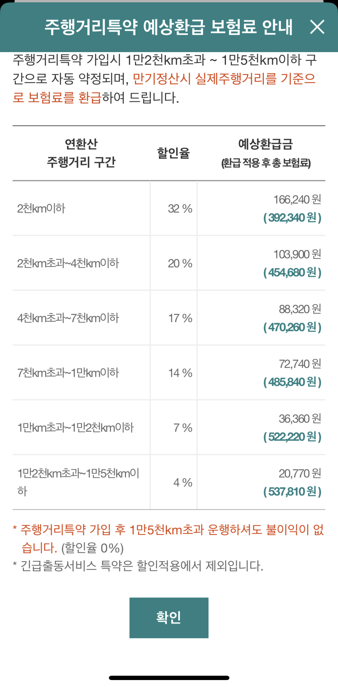 지금 여기 계산한 것들은 다 마일리지 특약 할인을 받기 전 금액이거든요. 물론 보험사마다 기준 주행거리와 할인율이 다릅니다.