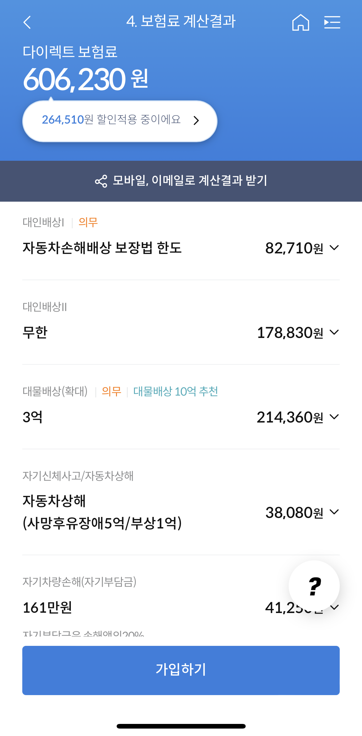 이런 보험료 비교를 할 때 중요한 건 담보범위를 똑같이 맞추는 겁니다. 의무보험을 제외한 대물배상, 자기신체사고/상해보험 등에 해당합니다. 저는 대체로 대물은 3억/5억, 상해보험도 5억으로 맞췄습니다.