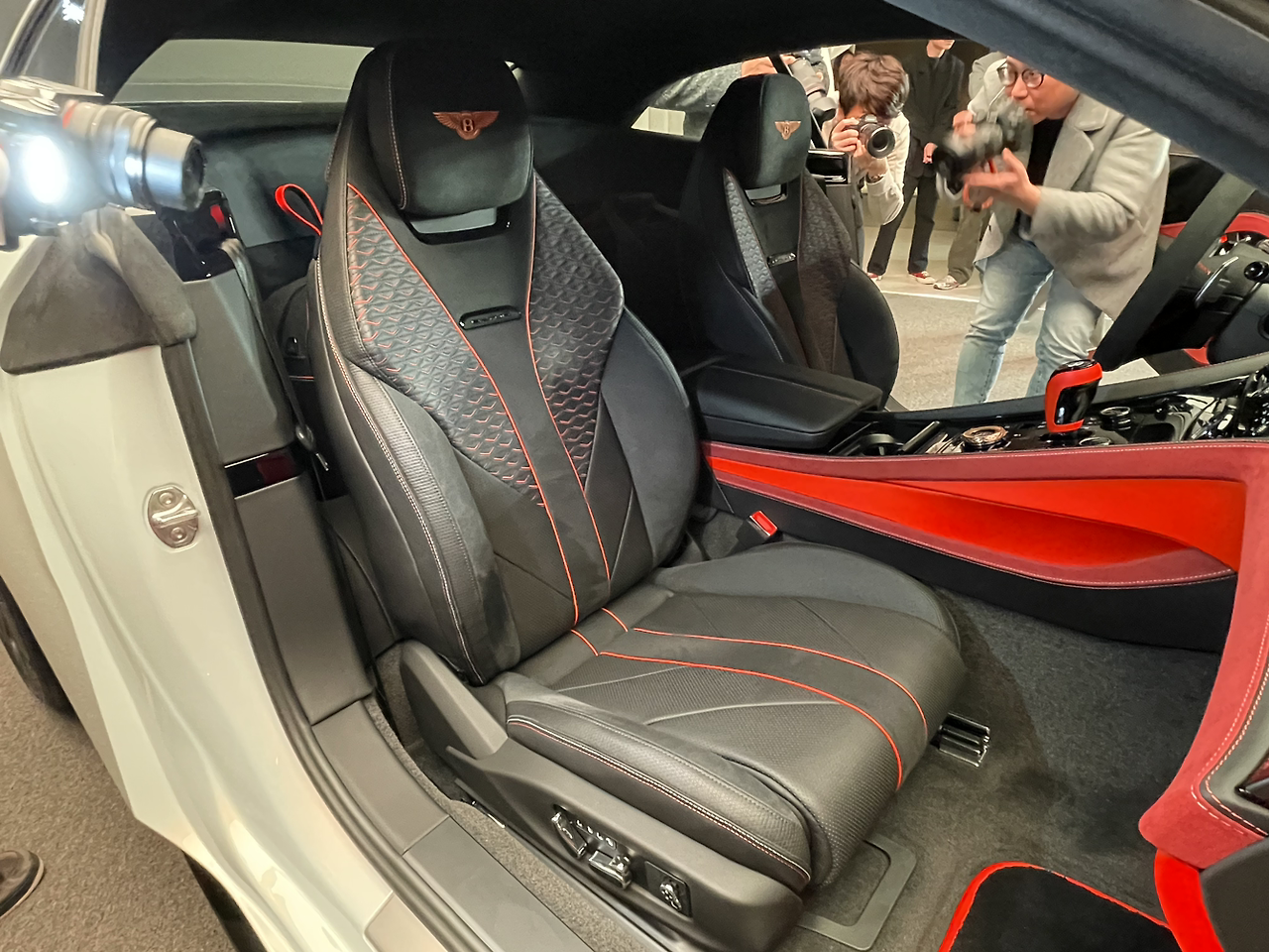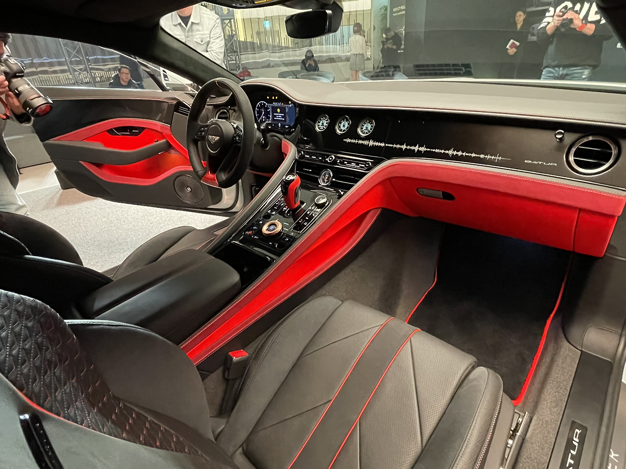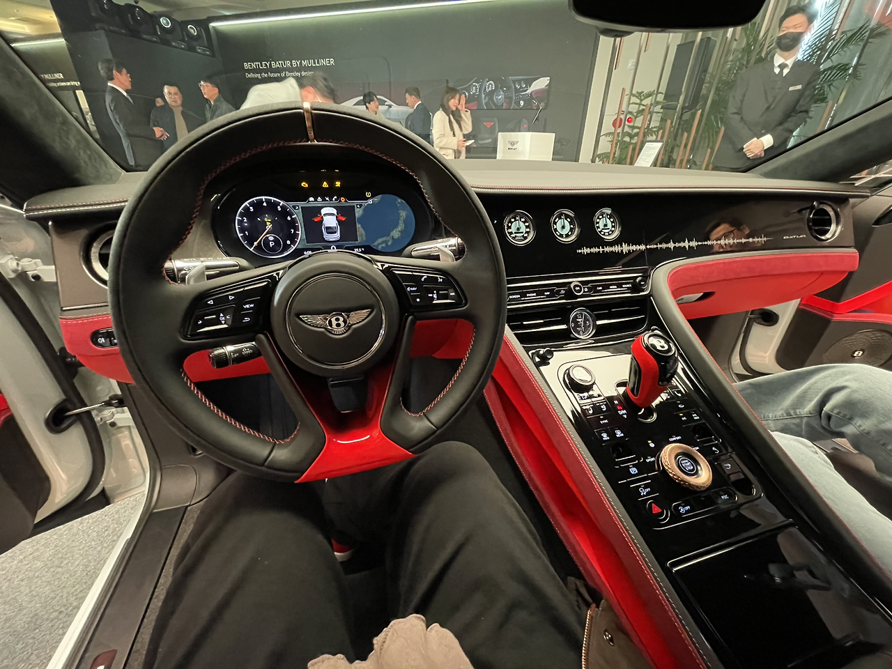 실내는 화려합니다. 시제품으로 만들어진 이 차는, 채도가 매우 강한 빨간색이 강렬합니다. 물론 버튼들의 배치가 컨티넨탈 GT와 같고 피아노 블랙 면적이 넓어 크게 달라 보이지는 않습니다만… 이건 뮬리너와 주문한 고객의 취향에 따라 완전히 달라질 수 있는 부분이기도 해서 그러려니 합니다. 18대가 완성되면 바칼라 때처럼 (누가 주문한 것인지는 숨기고) 차를 볼 수 있는 기회가 있었으면 좋겠습니다.