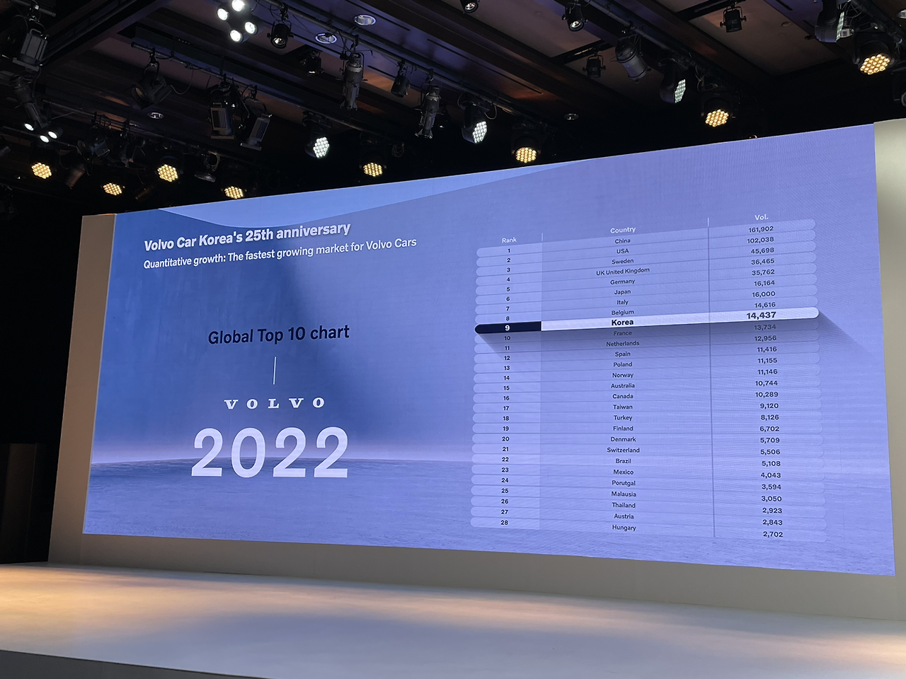 볼보 코리아는 1.4만 대를 팔아 작년 글로벌 9위를 했습니다. 8위였던 벨기에와의 차이는 불과 180대가 안됩니다. 2만 대를 팔면 독일에 이어 6위가 됩니다. 항상 공급이 수요를 따라가지 못했는데, 이번 임원진 방문으로 좀 해결되었으면 싶긴 하네요.