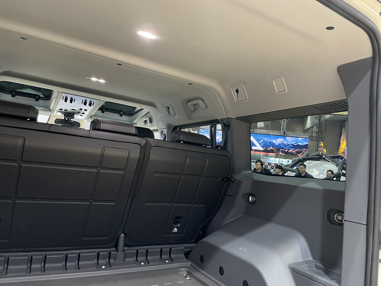 이 사진은 아쉬우면서 이해가 된 부분입니다. 디펜더 혹은 시리즈 랜드로버의 상징인 지붕 코너의 알파인(alpine) 윈도가 사라졌거든요. 이 창은 말 그대로 지그재그로 내려오는 산길에서 대각선 뒤쪽 상황을 보는 것이 목적이었습니다. 나중에는 2열과 3열 승객에게 개방감을 주고 아주 독특한 특성이 되었지요. 아마도 안전 등의 이유로 사라진 것이 아닌가 싶습니다. 대신 외부에는 유틸리티 바가 위치를 대신했네요.