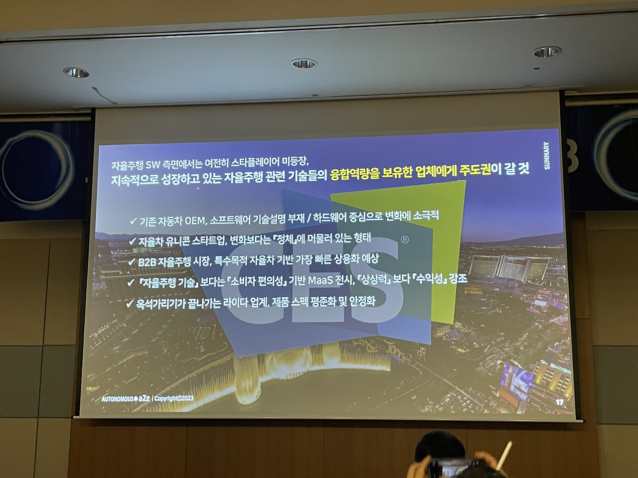 서울 모빌리티쇼의 부대행사로 열린, <모빌리티의 혁신, CES 2023 - 참여 업체 경험 공유의 장> 행사 후반부 내용입니다.